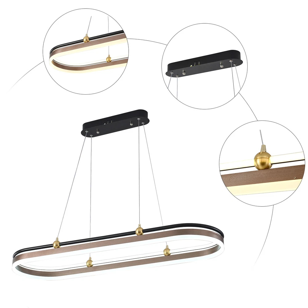 Modern LED Chandelier Dimmable Linear Rectangle Hanging Pendant Lamp 3000-6500K