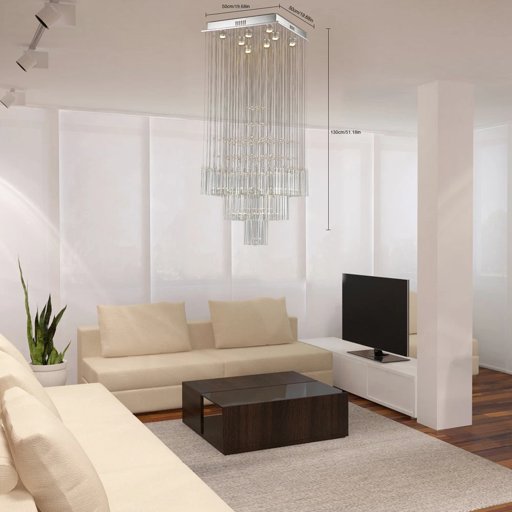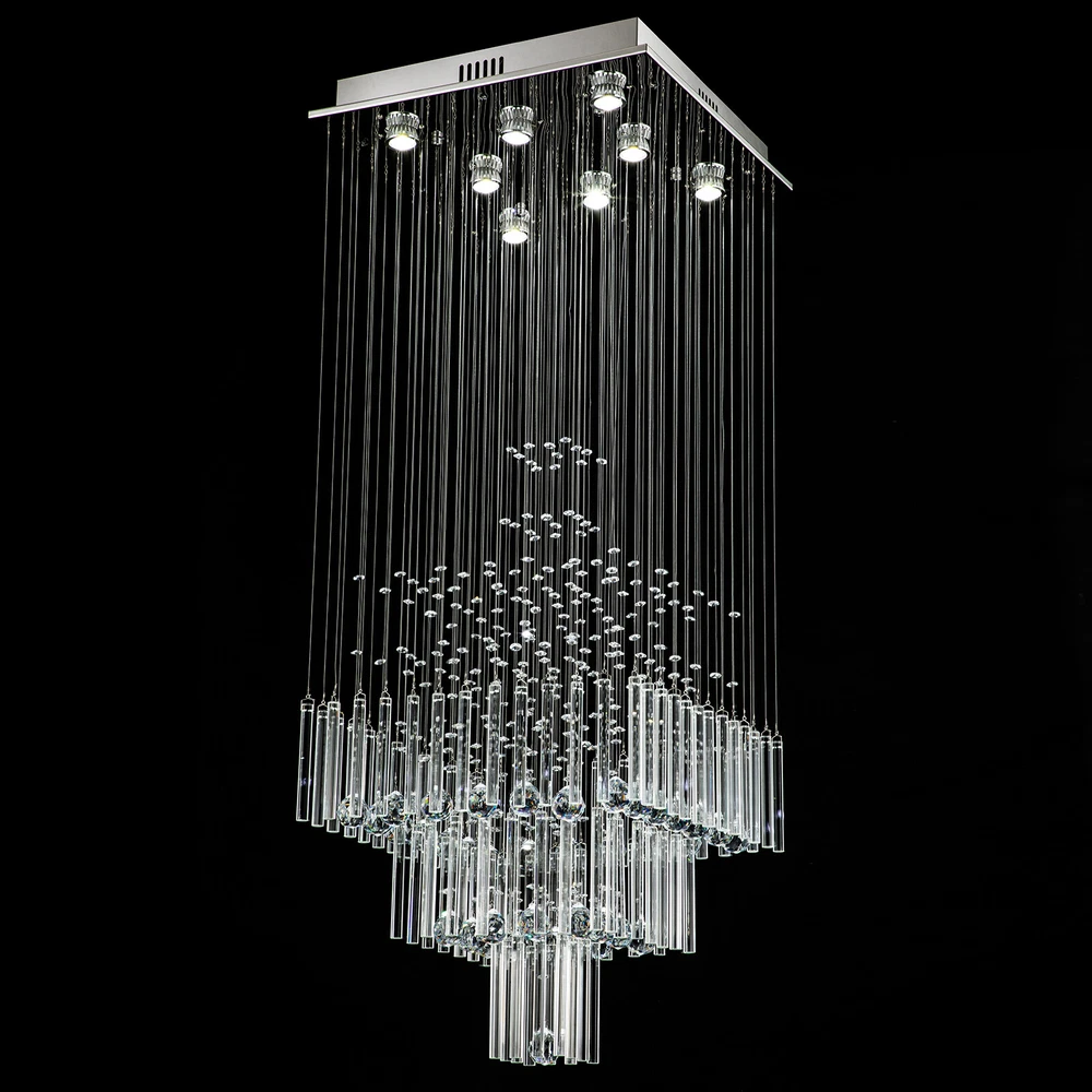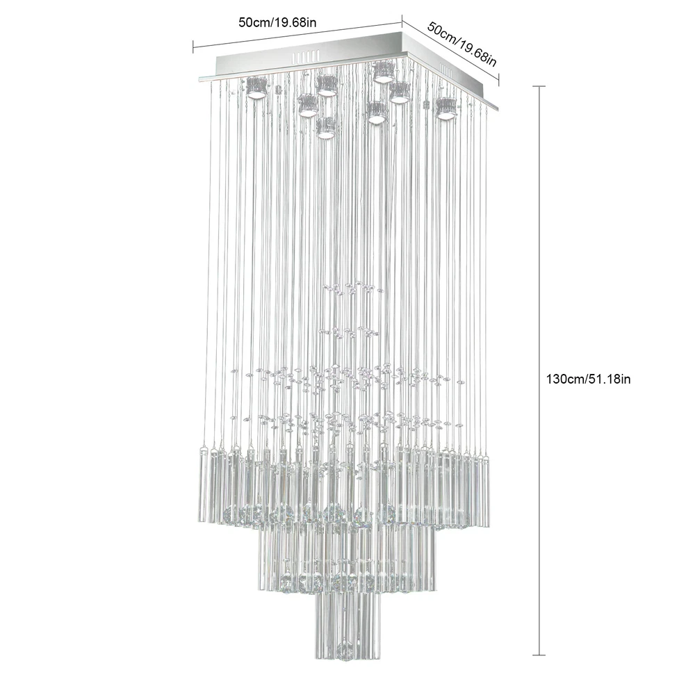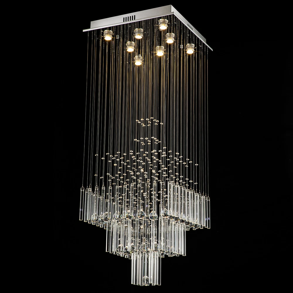 Modern Luxury Crystal LED Chandelier Pendant Lamp Square Rain Drop Ceiling Light