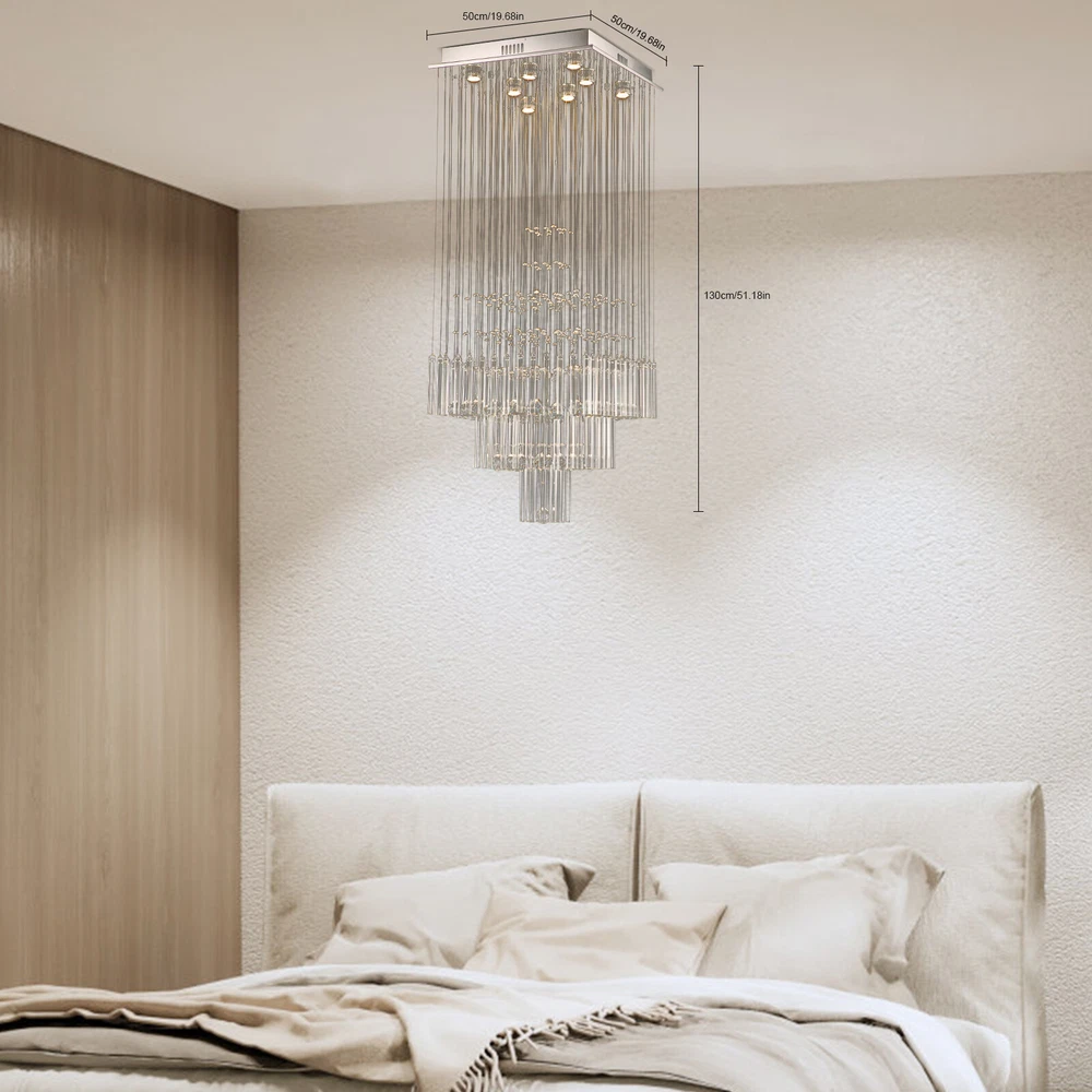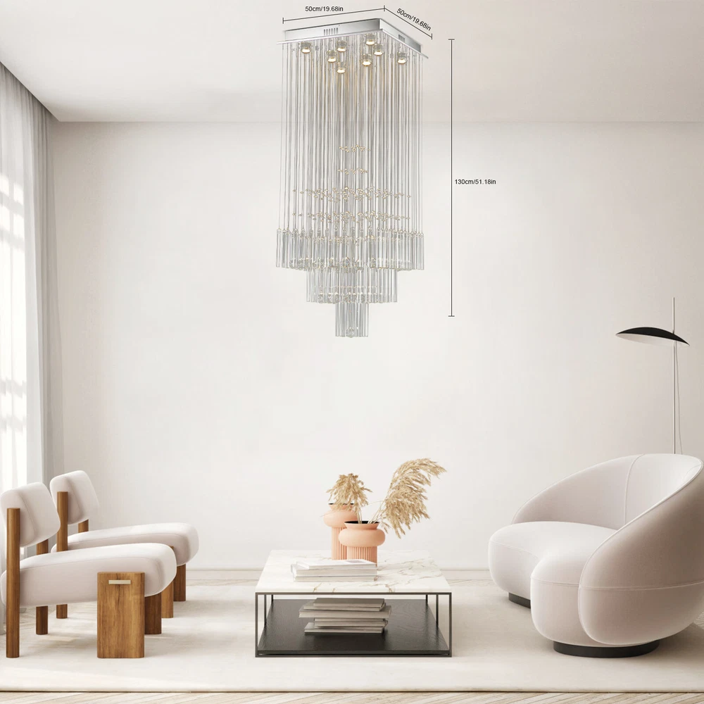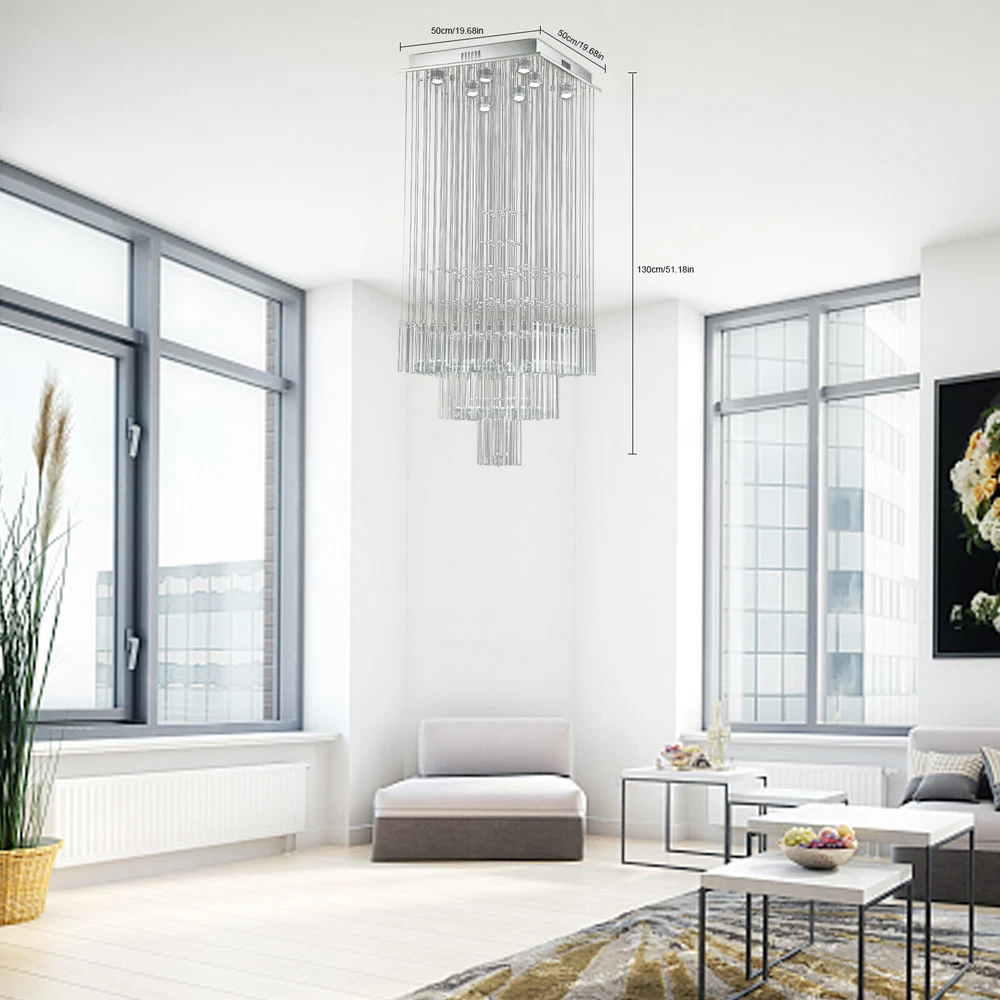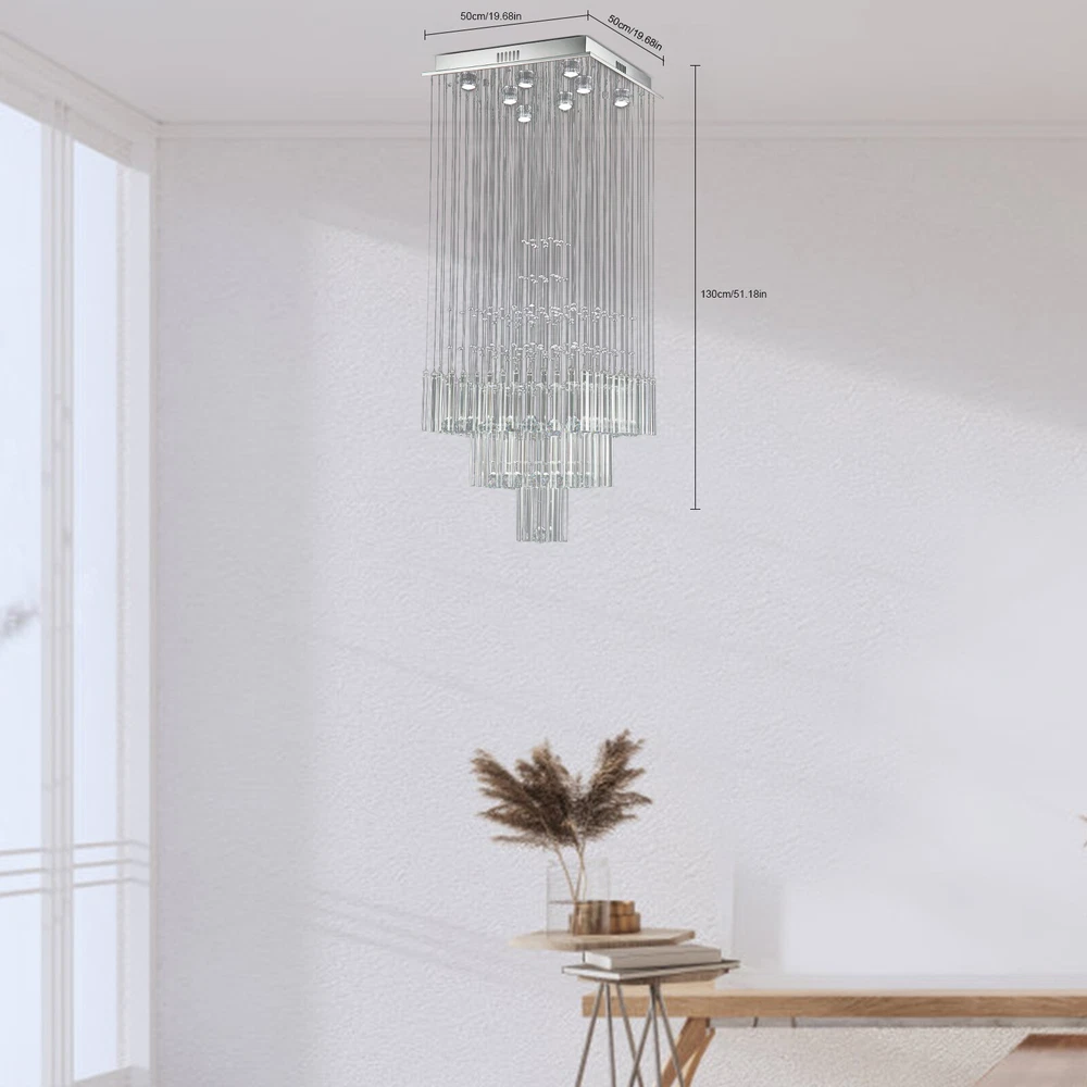 Modern Luxury Crystal LED Chandelier Pendant Lamp Square Rain Drop Ceiling Light
