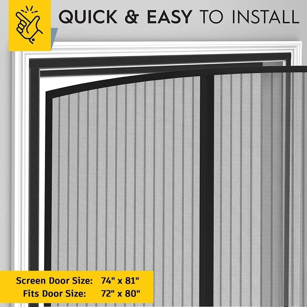 Modern Magnetic Screen Door - 74 Inches x 81 Inches, Keeps Bugs Out Effectively ‹ › ‹ › ‹ › ‹ › ‹ › ‹ › ‹ › ‹ › Modern Magnetic Screen Door Size: 74 Inches x 81 Inches | Fits Door Size: 72" x 80" Features: Magnetic screen door effectively keeps bugs, mosquitoes, and pests out. Heavy duty mesh allows fresh air to circulate while keeping the door securely closed. Simple installation with included hook and loop tape and extra push pins for added security. Full-length magnets ensure an effective seal, unlike others with sporadic strips. Kid & pet friendly design lets children and small pets pass through effortlessly. Patented snaps hold the sides in place for easy access when needed. Benefits: Effortlessly enjoy fresh air without pesky insects. Quick and simple installation saves you time. Strong magnets provide a comprehensive barrier against unwanted pests. Lightweight and user-friendly for kids and pets, creating a welcoming environment. Stylish modern design enhances the look of your home. Why Choose Our Magnetic Screen Door? Transform your home into a bug-free oasis with our Modern Magnetic Screen Door, designed for seamless functionality and stylish appeal. Make sure to measure your door frame for the perfect fit (ideal for door sizes 72" x 80"). Its effortless installation means you can safeguard your home against insects in no time, while the durable materials ensure longevity. Don't let bugs ruin your outdoor enjoyment; invest in our magnetic screen door and relish the fresh air in your home today! Shipping Free & Fast Shipping - We offer free shipping to most of the USA with a normal delivery time of 3-7 days. However, due to the current situation, additional delivery time (up to 3 weeks) may be required for some items. Alternative Carriers - We may use alternative carriers (e.g. USPS, FedEx, UPS, etc.) to ensure your package arrives safely and on time. Due to the use of multiple carriers, we are unable to provide a tracking number automatically. Handling Time - Orders are processed and shipped within 1-2 business days of receiving cleared payment. Shipping Restrictions - Shipping to Alaska, Hawaii, Puerto Rico, Guam, and other US territories may incur shipping charges or delivery restrictions. Please contact us before ordering, or your order can be refunded/cancelled. State Restrictions - There may be restrictions based on your state of purchase. For example, certain items may not be shipped to California due to state regulations. Contact for Tracking Updates - If you require tracking updates or have any concerns about the delivery of your order, please feel free to contact us, and we will be happy to assist you. Return 30-Day Hassle-Free Returns - We want you to be completely satisfied with your purchase. If you are not, you can return the item within 30 days of receiving it for a full refund or exchange. Easy Return Process - To start a return, simply contact us and we will provide you with a prepaid return shipping label and detailed instructions. Restocking Fee - There are no restocking fees for returns. However, the buyer is responsible for return shipping costs if the return is not due to a seller's error. Refund Processing Time - Refunds will be processed within 5 business days of receiving the returned item in its condition. Payment We accept all major credit cards, PayPal, and Apple Pay for your convenience. Your payment information is secure and encrypted to ensure a safe and seamless transaction. Please complete your payment within 3 days of purchase to avoid any delays in shipping. Feedback Your feedback is extremely important to us. We strive to provide the best products and customer service possible. If you are satisfied with your purchase, please take a moment to leave us a positive review. If you have any concerns or issues with your order, please contact us before leaving negative feedback. We are committed to resolving any problems and ensuring your satisfaction. Contact Us If you have any questions or concerns, please feel free to out to our customer support team. You can contact us through the eBay messaging system. We are available Monday to Friday, 9:00 am to 5:00 pm EST, and we will do our best to respond to your inquiry within 24 hours. Buy it now and enjoy a pleasant shopping experience! Model: Magnetic Screen Door Unit Quantity: 1 Suitable For: Fixed Window,Sliding Door,Mosquito Netting for Patio,Storm Door,Front Door Material: Polyester Features: Durable,Easy To Install,Self-Sealing,Pet Friendly,Kid Friendly,Heavy Duty,Hands-Free,Magnetic,Breezy Insect Protection Color: Magnetic Item Height: 81 Inches Type: Screen Door Number in Pack: 1 Item Depth: 0.5 in Item Thickness: 0.1 in Item Weight: 1 lb Unit Type: lb