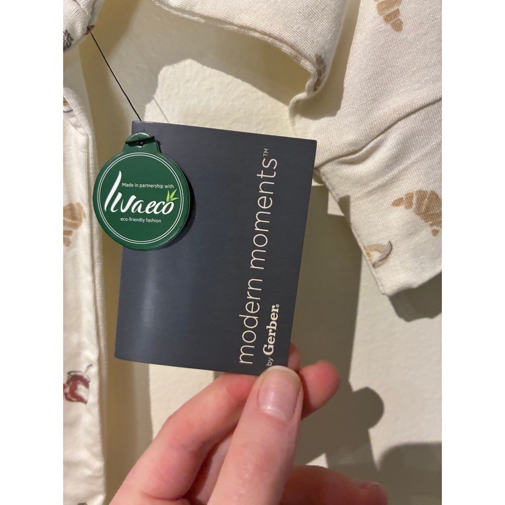 Soft and stretchy long-sleeve sleeper crafted from Livaeco viscose for an eco-friendly touch. This one-piece features a convenient full-length zipper with a chin guard for easy changes and comfort. The ivory fabric is decorated with a charming "Ivory Breakfast" print including croissants, coffee pots, and jam jars. Fold-over cuffs on the sleeves provide extra warmth or protection for little hands. Brand: Modern Moments by Gerber Material: 95% Livaeco Viscose, 5% Spandex Pattern: Breakfast (Croissants, Coffee, Jam) Color: Ivory Style: Zip-up Footless Sleeper Neckline: Crew with Chin Guard Sleeve: Long Sleeve with Fold-over Cuffs Features: Eco-friendly, Stretch Fabric Theme: Foodie, Morning, Cozy Care: Machine Wash Cold Keywords: Bamboo Alternative, Sustainable, Neutral, Unisex, Brunch, Moka Pot, Pajamas, Romper, Loungewear, Infant, Baby Shower Gift