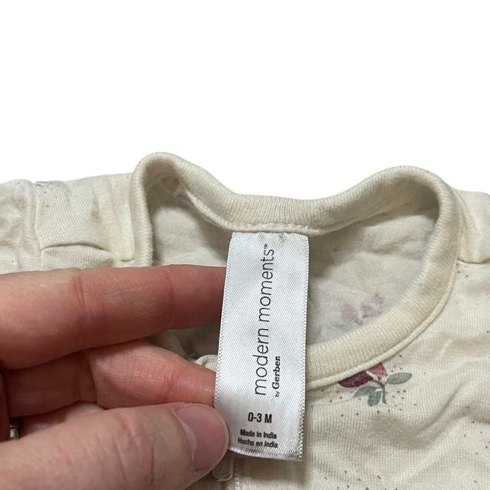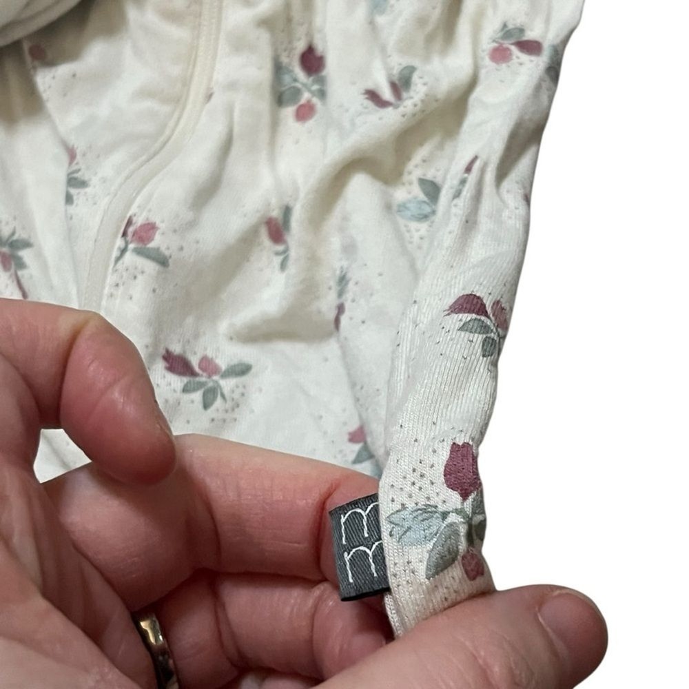 Adorable cream one piece with a charming floral pattern. Perfect for keeping your little one cozy and stylish. Bamboo viscose. Super soft. Comfy one piece long sleeve long pants pajamas In good preowned condition.
