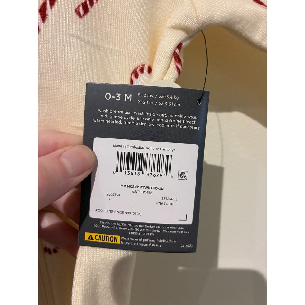 Modern Moments by Gerber baby footed sleeper provides cozy comfort for your little one. This long-sleeve one-piece features a full-length zipper for easy changes and a soft ribbed texture throughout. The cream-colored fabric is decorated with a festive candy cane and peppermint candy print in a classic red and white palette, making it a perfect choice for the holiday season. Brand: Modern Moments by Gerber Type: Footed Sleeper Color: Winter White Pattern: Candy Cane / Peppermint Sleeve Length: Long Sleeve Closure: Zip Up Features: Footed, Ribbed Fabric Style: Holiday, Christmas Theme: Festive Keywords: Christmas pajamas, holiday sleeper, candy cane print, baby footies, winter white, Gerber Modern Moments, newborn pajamas, festive baby clothes, ribbed sleeper, zip up footie, peppermint print, holiday outfit, neutral holiday, cozy sleepwear