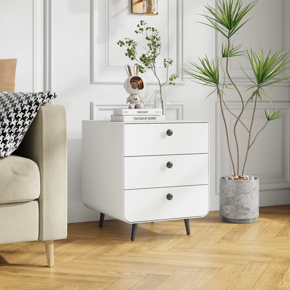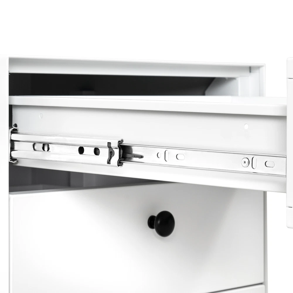This sleek white steel nightstand is a game-changer for small spaces! The smooth-gliding drawers open fully, making it super easy to organize essentials without digging. Sturdy yet lightweight, it adds modern flair while keeping everything within arm's reach—perfect for bedside clutter control. The minimalist button handles give it a clean look, and assembly was surprisingly simple. Love how sturdy it feels for the price!