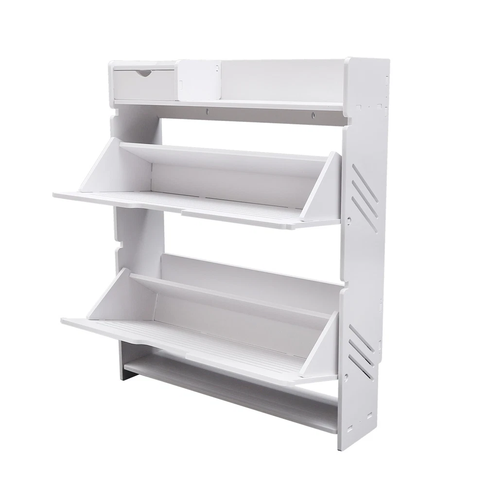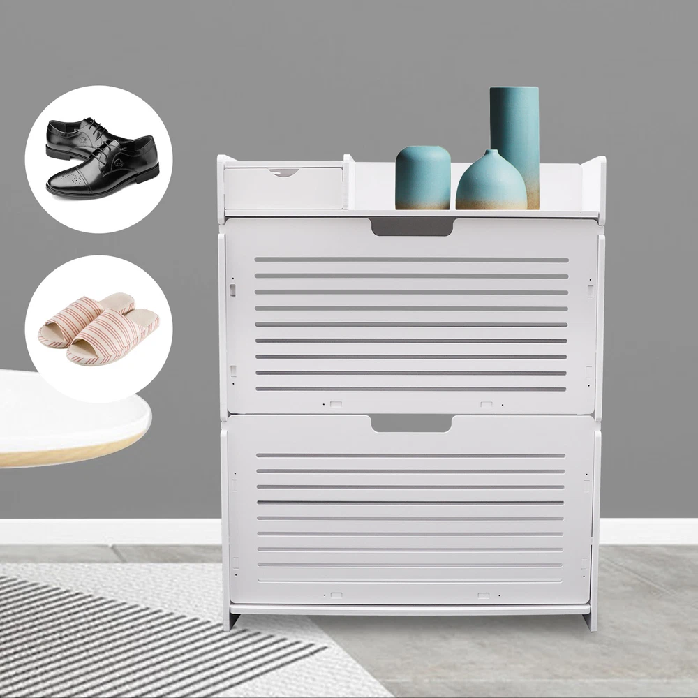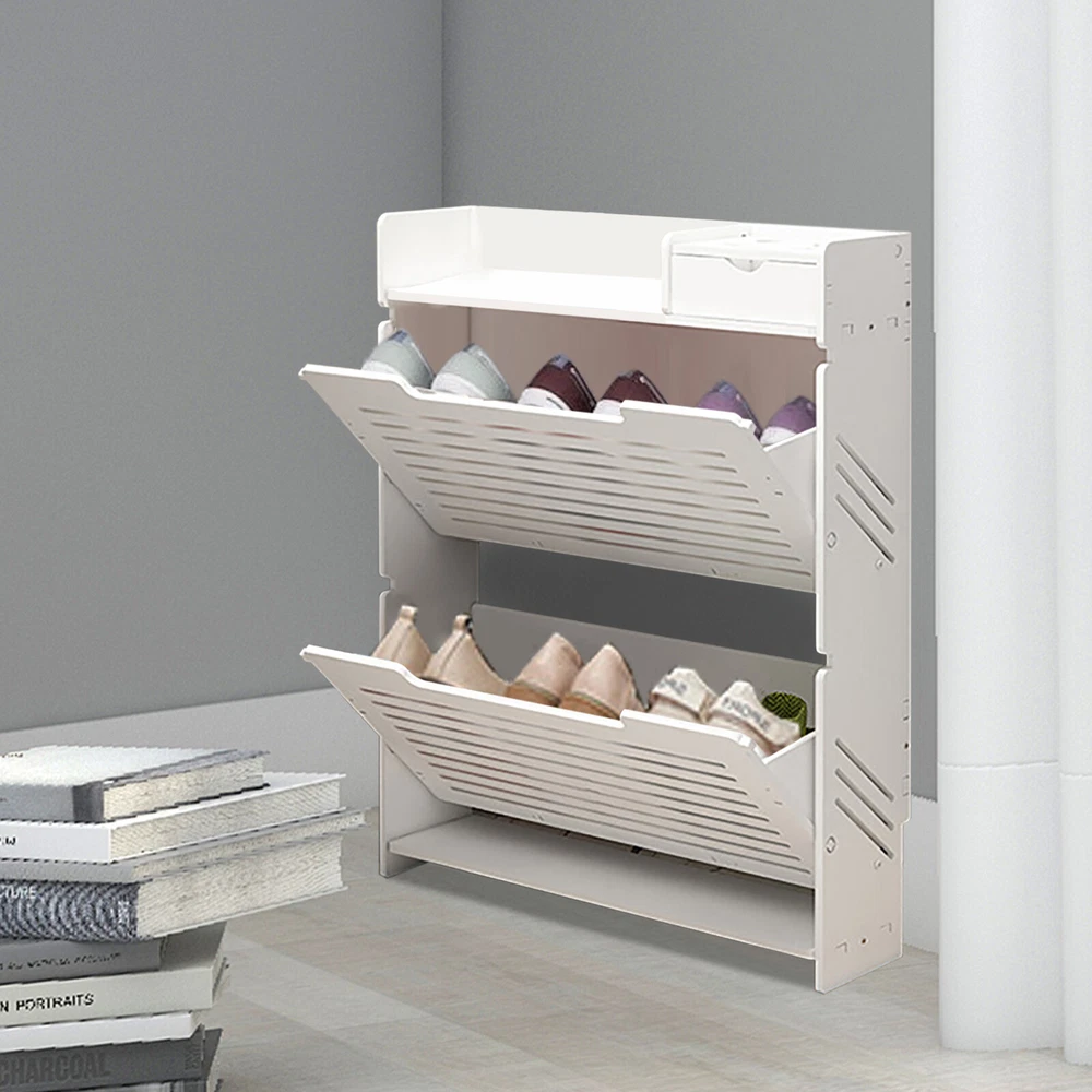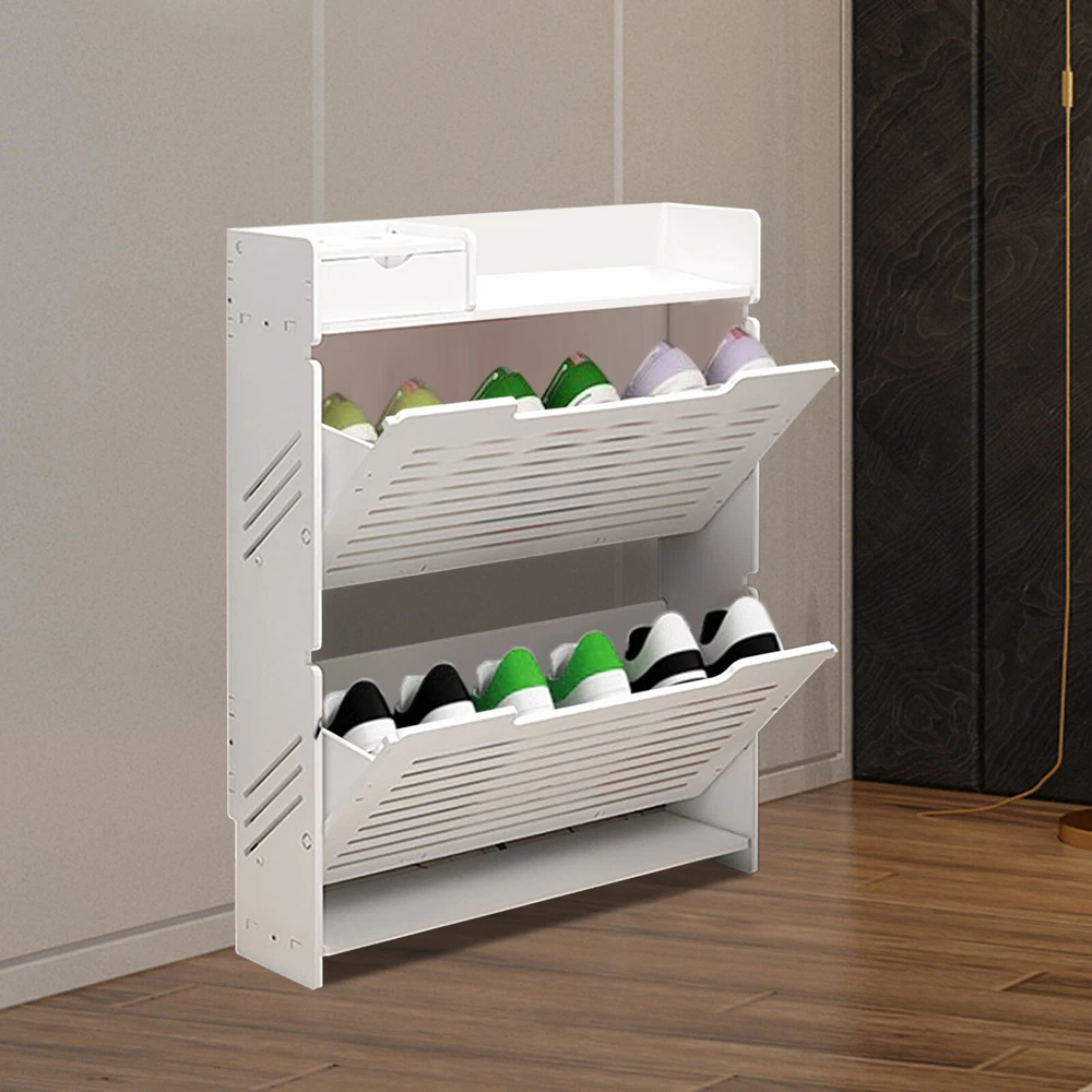 This modern shoe rack is a game-changer for small spaces! The flip-drawer design makes accessing shoes super easy, and the two-layer storage fits more than expected. Love that it's sturdy PVC—no wobbling—and the clean white finish matches any decor. Bonus: the top shelf is perfect for displaying plants or decor while keeping shoes neatly tucked away. Super practical and stylish!
