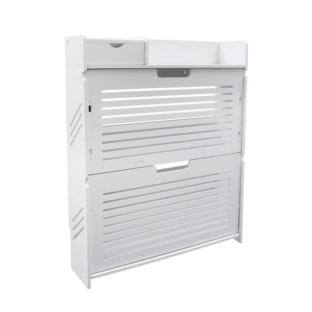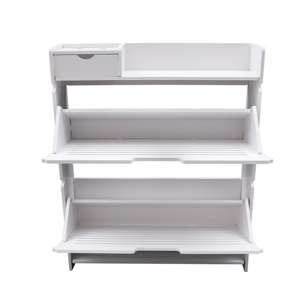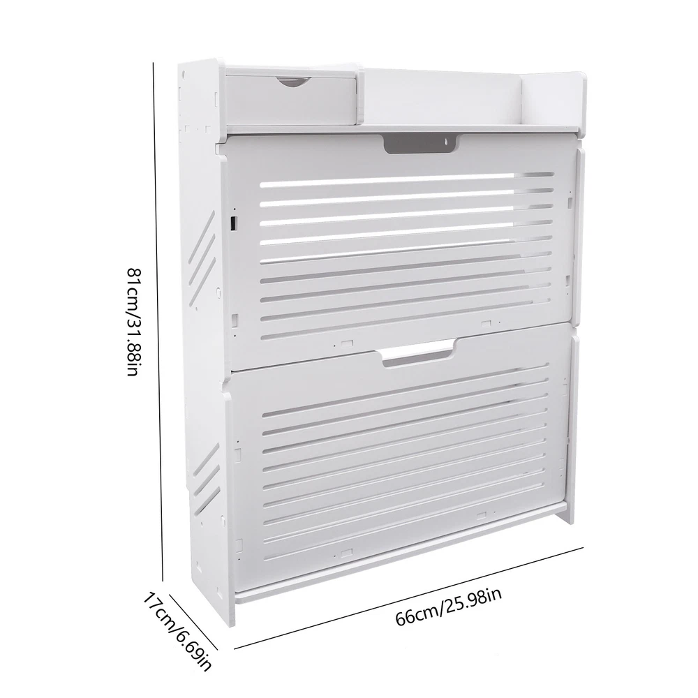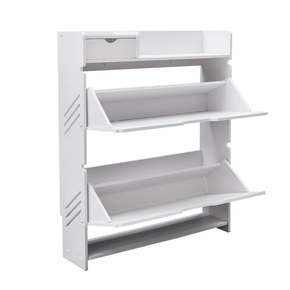 This modern shoe rack is a game-changer for small spaces! The flip-drawer design makes accessing shoes super easy, and the two-layer storage fits more than expected. Love that it's sturdy PVC—no wobbling—and the clean white finish matches any decor. Bonus: the top shelf is perfect for displaying plants or decor while keeping shoes neatly tucked away. Super practical and stylish!