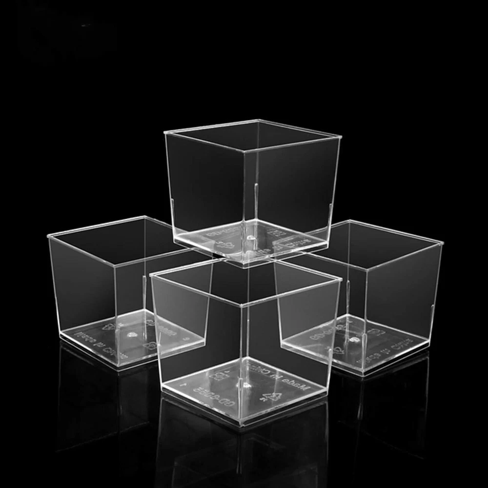 60 Packs 5 Oz Square Clear Plastic Ice Cream Dessert Bowls Tumbler Cups Tasting Sample Cups Appetizer Cups Disposable Plastic Dessert Cups Holder Salad Serving Bowls for Event Party Wedding Specifications Material: High quality PET,Plasic Capacity: 5 Oz/150ml Color: Clear Size: 60*54*55mm/2.36*2.13*2.17inch. Top Diameter:2.36,Bottom Diameter:2.13,Height:2.17. Package Included: 60 Pcs * Square Clear Plastic Dessert Cups(Ice Cream NOT included) Features: 1. 5 Oz/150ml Clear Plastic Dessert Cups, made of High Quality PET, Plastic,Free and non , which will not Break, Chip or Crack .Safe for and adults. 2. & Safety: Our Clear Plastic Dessert Cups, food-, non-, no BPA, durable materials, to ensure that your disposable plastic cups will not be destroyed, and make them feel healthier,enjoy your party. 3. These Square Dessert Cups are clear and will showcase your perfect Trifle Look Layered Desserts.Perfect for small servings of parfaits, mousses, puddings, smoothies, frozen yogurts, sorbets, sherbets, side sauces, fruit cocktails, liqueurs, portioned beverages as party supplies for any party occasion. 4. Disposable of these Dessert Cups responsibly after your party or quickly wash and stack them up to reuse later. Cut down on cleaning and dishwashing time make life more comfortable. 5. Modern design, Premium plastic Square shape will showcase your favorite finger foods, candies, snacks, desserts, and appetizers in style.It can support you handle any entertainment easily. 6. Perfect for your special occasion and upscale catered event, you can pair this piece with anything you can.Grate for any Occasion, such as birthday parties, baby showers, anniversary gatherings, Valentine's Day, Easter, Christmas, Thanksgiving, wedding receptions, buffets, and more. Notice: Not into the microwave heating! High Quality: 5 Oz/150ml Clear Dessert cups are made from food plastic, BPA, PVC, and phthalate free, Free and non , which will not Break, Chip or Crack .Safe for and adults. Design: Modern design, Premium plastic Square shape will showcase your favorite finger foods, candies, snacks, desserts, and appetizers in style.It can support you handle any entertainment easily. Widely use: Perfect for servings of parfaits, mousses, puddings, smoothies, frozen yogurts, sorbets, sherbets, side sauces, fruit cocktails, liqueurs, portioned beverages as party supplies for any party occasion. Perfect for your special occasion and upscale catered event, you can pair this piece with anything you can.Grate for any Occasion, such as birthday parties, baby showers, anniversary gatherings,wedding receptions, buffets, and more. Washable,Reusable and Disposable,durable enough to be washed and re-used.Perfect salad bowl, ice cream bowls!Please note that Not put into the microwave heating.