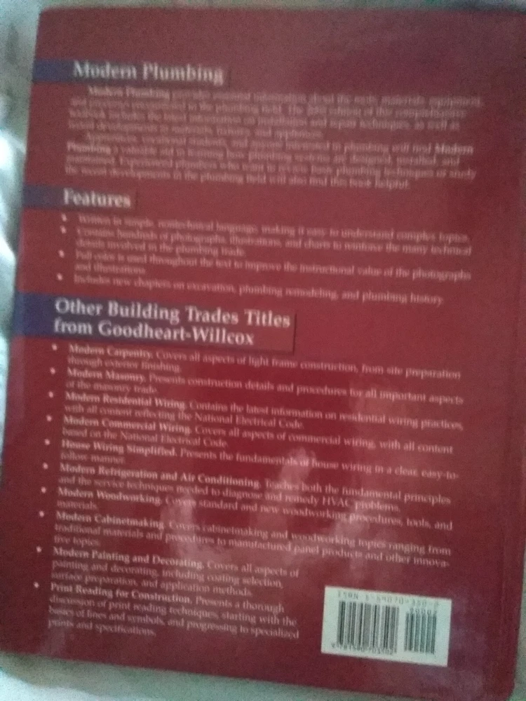 Item Width: 5.5 in Original Language: English Topic: Construction, Do-It-Yourself, Repairing ISBN: 9781590703502 Narrative Type: Nonfiction Intended Audience: Young Adults, Adults Publisher: Goodheart-Willcox Publisher Item Length: 8 in Book Title: Modern Plumbing Item Weight: 12.8 Oz gtin13: 9781590703502 Number of Pages: 640 Pages Book Series: Diary of a Wimpy Kid Ser. Features: Illustrated Publication Year: 2005 Country of Origin: United States Author: Keith Blankenburger Language: English Item Height: 1 in Format: Hardcover