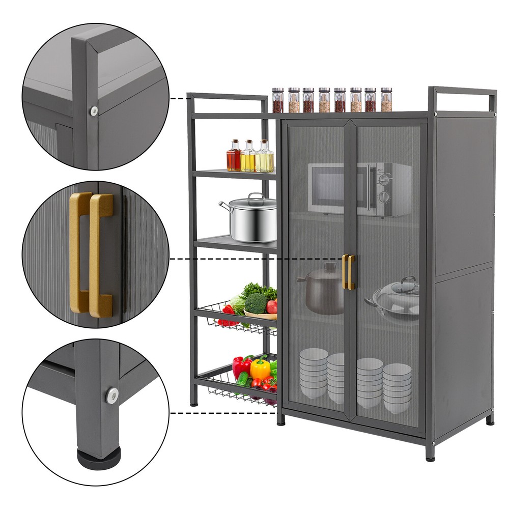 Kitchen Pantry Storage Cabinet with Microwave Storage Space and Shelves