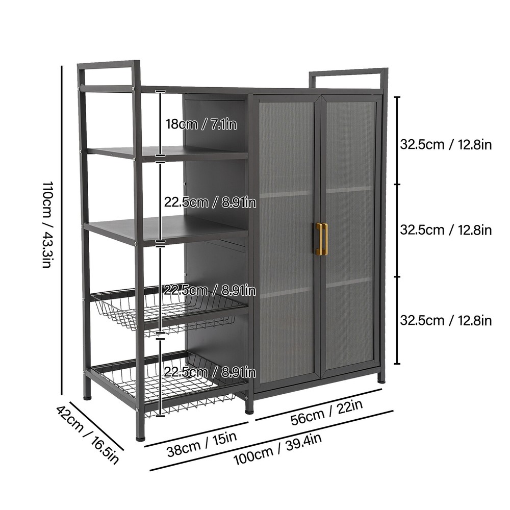 welcome to harebellaf Description Cleanness and tidiness are a good attitude towards life and will put you and your family in a good mood. Our storage cabinet is made of high-quality material with sufficient storage space and a beautiful and practical design, allowing you to neatly and efficiently organize your belongings and make you feel organized and relaxed. Say goodbye to a cluttered room and enjoy a neater, more efficient life! Key Features Sturdy and Durable: It is made of high-quality carbon steel and PVC with a baking paint process, which is eco-friendly, odorless, anti-corrosion, and rust-resistant , ensuring its beauty and long-time use. Life Assistant: The 4-tier design can effectively organize kitchen utensils, books, towels, toiletries, laundry and other household items. The top platform can hold microwave, rice cooker, etc., while the heightened detachable draining trays can be used separately as a fruit and vegetable cleanup tray for your convenience. Thoughtful Design: The sealed, semi-clear, and magnetically-designed cabinet doors allows for convenient opening, prevent dust, moisture, and insects , and also show inside items elegantly for easy access. In addition, the shelves inside the cabinet can be adjusted to five heights to make it easier for you to place larger cookware or appliances. Easy to Clean: Thanks to its smooth surface, simple construction,and dustproof door, you can wipe it clean with a damp rag. Simple Installation: With complete accessories and a simple structure, you can put it together by yourself and enjoy the fun of the installation process! Ideal Gift: Thanks to its practicality, it will make a fine gift for family, friends, and loved ones on Christmas, housewarming, birthdays, anniversaries, and holidays. Protective Package: We have used foam wrapping for this product, designed to minimize damage to the product during shipping. Customer Service: We aim to provide quality products and services. If you have any problems, please feel free to contact us. We will reply and solve the problem for you as soon as possible. Details Convenient Handle: The ergonomic handle can help you open or close the cabinet door more easily. Raised Baffle: The raised top baffle design prevents items you placed from falling. Adjustable Feet: They can be adjusted to provide better stability and adapt to uneven floors. Application It is ideal for bedroom, study, nursery, playroom, entryway, living room, kitchen, children's room, bathroom, toilet and so on. It can be used to store dishes, housewares, microwaves, coffee makers, toasters, frying pans, rice cookers, crock pots, vegetable baskets, spice bottles, toys, snacks, towels, paper towels, books, and other daily necessities. Specification Color: Black Style: Modern Shape: Rectangular Process: Baking Paint Material: Carbon Steel and PVC Installation Type: Floor Standing Assembly Required: Yes Number of Tiers: 4 Top Tier Spacing: 18cm/7.1in Each Bottom Tier Spacing: 22.5cm/8.9in Each Tier Spacing in the Cabinet: 32.5cm/12.8in Product Size: 100*42*110cm/39.4*16.5*43.3 inch Package Size: 115*45*23cm/45.28*17.72*9.06 inch Gross Weight: 17kg/37.48 lbs Net Weight: 16kg/35.27 lbs Package Included 1* Storage Cabinet 6* Pads Other Accessories for Assembly Notes Please check the product style and size before purchasing. Please note that this product does not include any other storage items. Please allow the slight color difference caused by the shooting light and 1-3cm error due to manual measurement and make sure you do not mind before ordering. Payment Delivery details Terms of sales About us Contact us Payment We accept ebay payment 。 Fees such as import duties, taxes are not included in the item price or shipping costs. These charges are the buyer's responsibility. Delivery details Shipping: 2-9 working days to: USA Terms of sales We maintain high standards of excellence and strive for hundred percent customer satisfaction. Feedback is very important to us. We hope that you contact us immediately before you give neutral or negative feedback, so that we can address your concerns. It is impossible to address issues if we do not know about them! About us Your satis faction is our ultimate goal. We work hard to earn your trust and future business. Our certified technicians have tested each item before shipping. The unit comes with 1 year limited warranty on all manufacturing defects. a) If you receive a defective item, you may return it or ask for a discount. Please contact us within 14 days after you receive the package. b) What you returned must be intact and in its original packaging as re? u. Customer is responsible for shipping costs of the returned item. c) We will cover the cost of shipping back t with the shipping rate indicated in the registration page. We will send you a new unit or refund the full payment you paid. Thank you. Contact us Business Hour Business Hour: Monday To Friday: 8:30 AM to 5:00 PM (Beijing China time) Due to time zones, our reply to your questions may not be immediately. But within above working time, we will reply your email within 24 hours. If it's non-workdays, please kindly be patient and wait till Monday. Please contact us with ebay message. Please feel free to contact us if you have any questions. Monday To Friday: 8:30 AM to 5:00 PM (Beijing China time) Due to time zones, our reply to your questions may not be immediately. But within above working time, we will reply your email within 24 hours. If it's non-workdays, please kindly be patient and wait till Monday. Please contact us with ebay message. Please feel free to contact us if you have any questions. Brand Unbranded Item Height 110cm/43.3in Item Length 100cm/39.4in Item Width 42cm/16.5in Color Black Material Carbon Steel and PVC Size 100*42*110cm/39.4*16.5*43.3 inch MPN Does not apply Mounting Free Standing Number of Tiers 4 Shape Rectangle Style Modern Type Cabinet UPC Does not apply