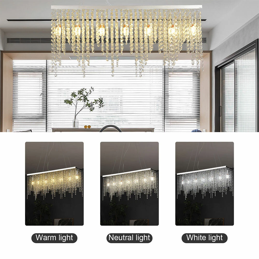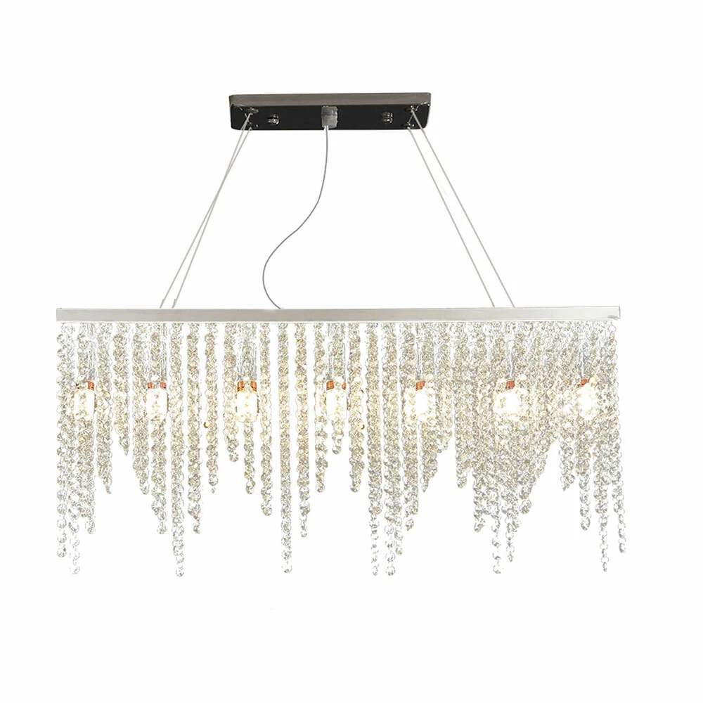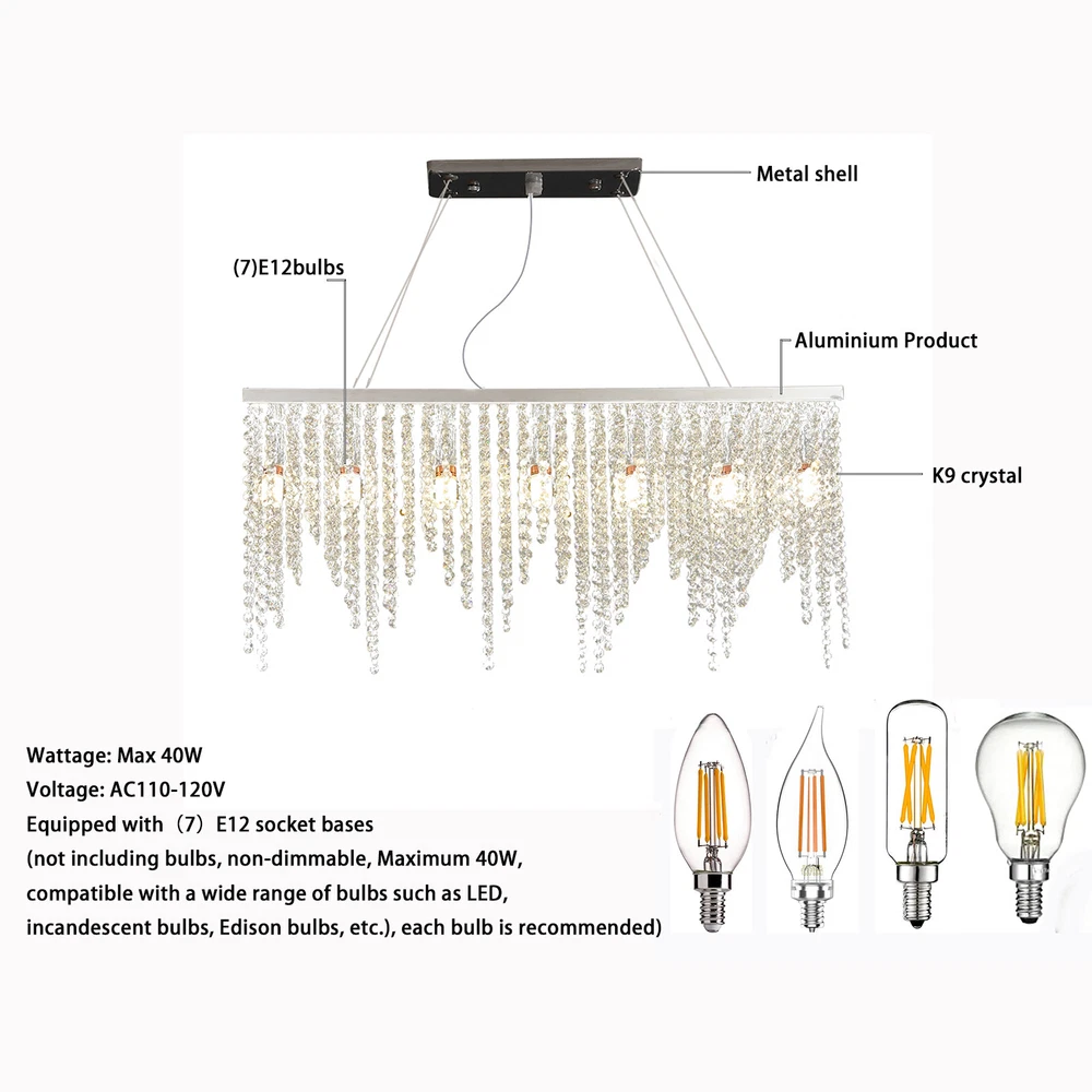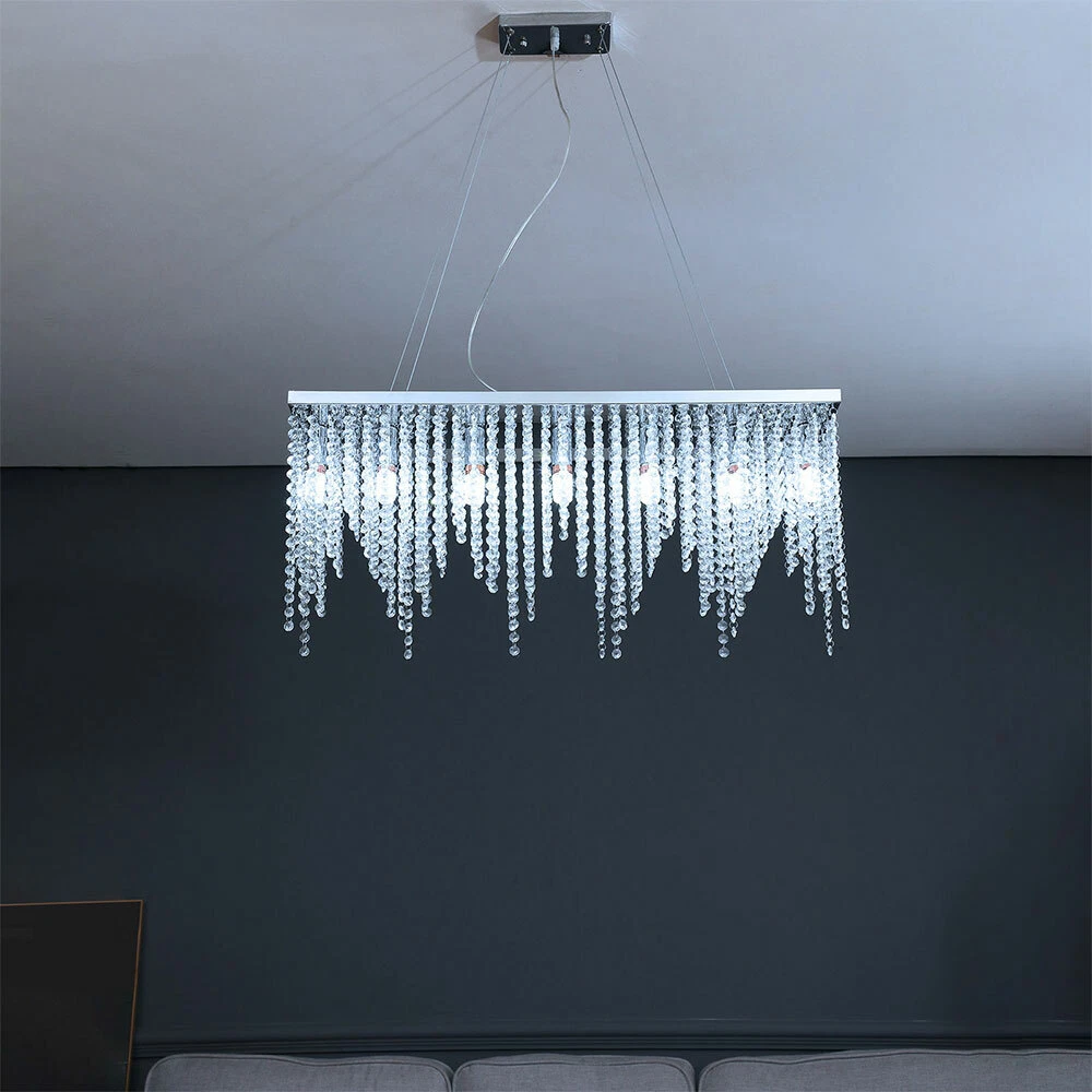 Description: Rain drop collection, sparkles from every angle. Full Assembly Required with time and effort. Feature: Material: Polished chrome stainless steel canopy and frame, top K9 clear crystal Dimension: Length 32" (80cm), Width 8" (20cm), Height 16" (40cm). Pendant wire: adjustable 59"(150cm) Light Source:E12 x 7 Bulbs Required (Max 40W each, NOT included). Works with incandescent, LED, CFL, halogen or color changing bulbs up to 40W. Fully dimmable when used with dimmable bulbs and a compatible dimmer switch (not included). Application: Ideal for living room, dining room, kitchen island, bedroom, foyer, indoor, farmhouse, sloped ceiling, bar, restaurants, galleries, exhibition room, hotel, coffee shop, office. Modern Rectangular Raindrop Crystal Chandelier Light Ceiling Light Pendant Lamp Description: Rain drop collection, sparkles from every angle. Full Assembly Required with time and effort. Feature: Material : Polished chrome stainless steel canopy and frame, top K9 clear crystal Dimension : Length 32" (80cm), Width 8" (20cm), Height 16" (40cm). Pendant wire: adjustable 59"(150cm) Light Source : E12 x 7 Bulbs Required (Max 40W each, NOT included) . Works with incandescent, LED, CFL, halogen or color changing bulbs up to 40W. Fully dimmable when used with dimmable bulbs and a compatible dimmer switch ( not included) . Application: Ideal for living room, dining room, kitchen island, bedroom, foyer, indoor, farmhouse, sloped ceiling, bar, restaurants, galleries, exhibition room, hotel, coffee shop, office. Payment Delivery details Terms of sales About us Contact us Payment We accept ebay payment 。 Fees such as import duties, taxes are not included in the item price or shipping costs. These charges are the buyer's responsibility. Delivery details Shipping: 2-9 working days to: USA Terms of sales We maintain high standards of excellence and strive for hundred percent customer satisfaction. Feedback is very important to us. We hope that you contact us immediately before you give neutral or negative feedback, so that we can address your concerns. It is impossible to address issues if we do not know about them! About us Your satis faction is our ultimate goal. We work hard to earn your trust and future business. Our certified technicians have tested each item before shipping. The unit comes with 1 year limited warranty on all manufacturing defects. a) If you receive a defective item, you may return it or ask for a discount. Please contact us within 14 days after you receive the package. b) What you returned must be intact and in its original packaging as re? u. Customer is responsible for shipping costs of the returned item. c) We will cover the cost of shipping back t with the shipping rate indicated in the registration page. We will send you a new unit or refund the full payment you paid. Thank you. Contact us Business Hour Business Hour: Monday To Friday: 8:30 AM to 5:00 PM (Beijing China time) Due to time zones, our reply to your questions may not be immediately. But within above working time, we will reply your email within 24 hours. If it's non-workdays, please kindly be patient and wait till Monday. Please contact us with ebay message. Please feel free to contact us if you have any questions. Monday To Friday: 8:30 AM to 5:00 PM (Beijing China time) Due to time zones, our reply to your questions may not be immediately. But within above working time, we will reply your email within 24 hours. If it's non-workdays, please kindly be patient and wait till Monday. Please contact us with ebay message. Please feel free to contact us if you have any questions. Power Source Hardwired MPN Does Not Apply Shade Shape Rain Drop Power Consumption Max 40W each, NOT included Room Bedroom, Dining Room, Home Office/Study, Living Room, Porch Lighting Technology LED Installation Area Indoor Features Dimmable, Rain Drop Collection, Sparkles From Every Angle Manufacturer Warranty 2 years Department Adults Item Width 8" (20cm) Voltage 110V Item Length 32" (80cm) Item Height 16" Material Chrome, Crystal, Stainless Steel Light Color Warm White Finish Polished shipping notice Can not ship to Puerto Rico,Alaska/Hawaii Brand Unbranded Style Modern Color Clear Item Diameter 16 in Type Chandelier EAN Does not apply UPC Does not apply ISBN Does not apply