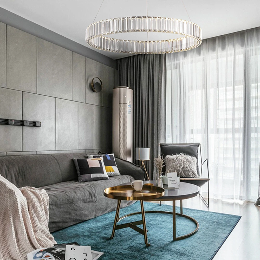 Modern Round Crystal Chandelier Pendant LED Lamp Ceiling Lighting Light Fixture About this item * HIGH QUALITY MATERIAL: LED pendant lights with the polish stainless steel and glass crystals, the sparking crystal glass prisms will create a glamour and brilliant room for you. * SPECIFICATION: Ring size: diameter31.5 inches, The strings are 39.3" Long adjustable, you can adjust the height of the ring easily by using the cable locking pins; Perfectly fit the height of your ceiling * DIMMABLE : Dimmable with traditional dimmer switches, 5%-100% dimming range. Dimmer switch is excluded. * ENERGY SAVING: 25W modern chandeliers, Voltage=85-265V, Light Source: LED chips, Light Color: 3000K-4500K-6000K(Warm light-Warm White- White), perfect for living room ,bedroom,dining room ,restaurant,porch etc. Please check the farmhouse chandelier lighting fixtures ceiling size before buying. The luminaire does not include a dimmer. Specifications: LED pendant light size: Diameter 31.5 inches × Height39.3 inches Power: 25Watt Working voltage: 110-120V 50/60Hz Lumens:1500 lumens Light color:3000K-4500K-6000K(Warm light-Warm White- White), Material: Stainless steel + Crystal Glass Light Body Color: Chrome finish Light Source: SMD2835 led chip, above CRI 80 index Feature of modern chandelier : 1. Energy saving: SMD2835 LED light source, which is 90% high-effective than traditional incandescent bulbs, will save a lot on your power bill. 2. Long lifespan: Better heat dissipation, can be used over 30000 hours. 3. Adjustable height: The lighting fixtures hanging string wires are adjustable, you can adjust the height of the wire easily by using the cable locking pins. 4. Wide applications: Modern and elegant design rustic chandelier, ideal for pendant lights in living room, kitchen island lighting, bedroom mini chandelier, study room hanging light fixtures, foyer small chandelier, etc. 5.You can dim the brightness of the chandelier light fixture according to your needs. Tips: · We recommend installing by professionals · -When installing and cleaning light, youmust cut off the power supply. Payment Delivery details Terms of sales About us Contact us Payment We accept ebay payment 。 Fees such as import duties, taxes are not included in the item price or shipping costs. These charges are the buyer's responsibility. Delivery details Shipping: 2-9 working days to: USA Terms of sales We maintain high standards of excellence and strive for hundred percent customer satisfaction. Feedback is very important to us. We hope that you contact us immediately before you give neutral or negative feedback, so that we can address your concerns. It is impossible to address issues if we do not know about them! About us Your satis faction is our ultimate goal. We work hard to earn your trust and future business. Our certified technicians have tested each item before shipping. The unit comes with 1 year limited warranty on all manufacturing defects. a) If you receive a defective item, you may return it or ask for a discount. Please contact us within 14 days after you receive the package. b) What you returned must be intact and in its original packaging as re? u. Customer is responsible for shipping costs of the returned item. c) We will cover the cost of shipping back t with the shipping rate indicated in the registration page. We will send you a new unit or refund the full payment you paid. Thank you. Contact us Business Hour Business Hour: Monday To Friday: 8:30 AM to 5:00 PM (Beijing China time) Due to time zones, our reply to your questions may not be immediately. But within above working time, we will reply your email within 24 hours. If it's non-workdays, please kindly be patient and wait till Monday. Please contact us with ebay message. Please feel free to contact us if you have any questions. Monday To Friday: 8:30 AM to 5:00 PM (Beijing China time) Due to time zones, our reply to your questions may not be immediately. But within above working time, we will reply your email within 24 hours. If it's non-workdays, please kindly be patient and wait till Monday. Please contact us with ebay message. Please feel free to contact us if you have any questions.