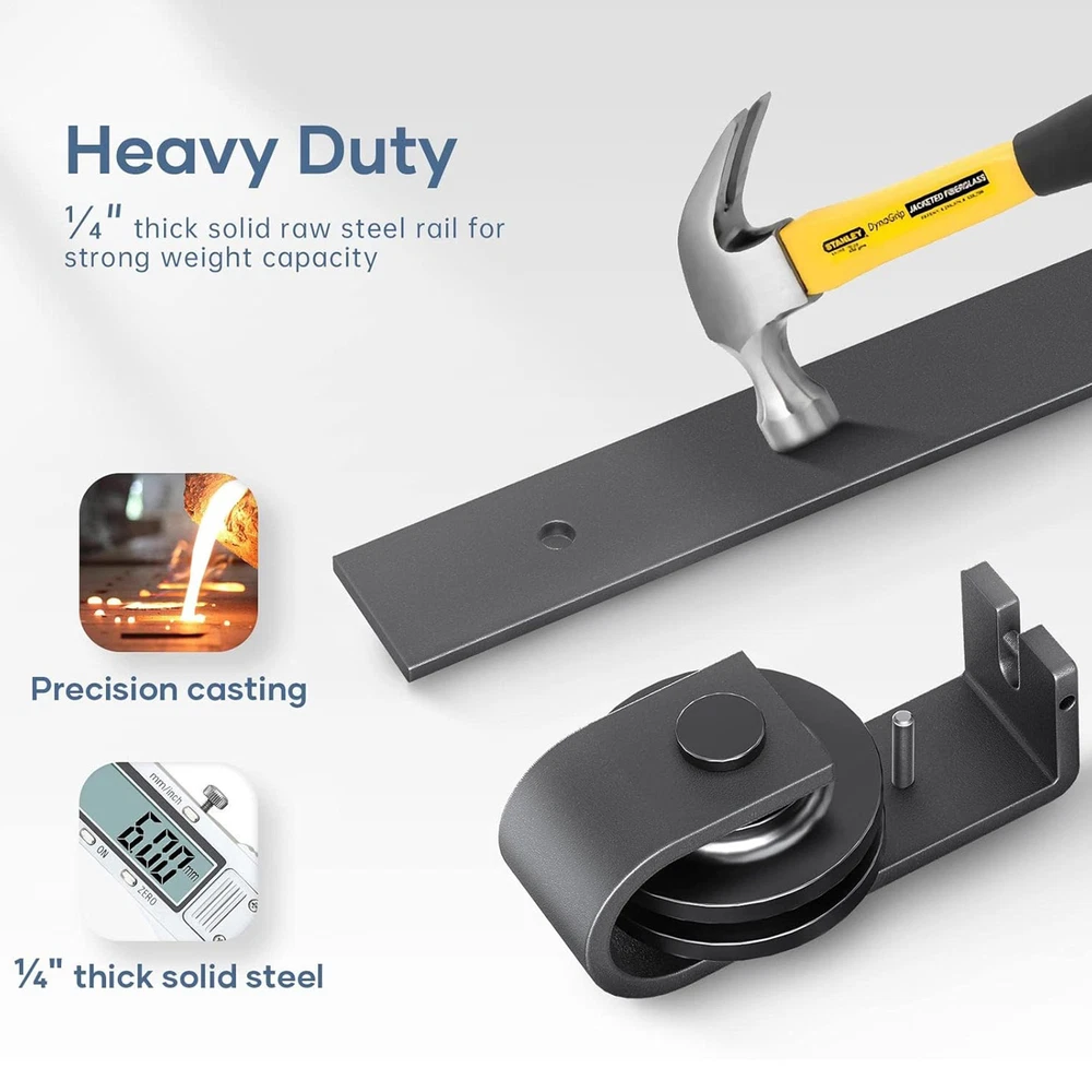 Store category Sign Up Now ! You may also like Product Description Space-Saving Safety: Improve your home's elegance with our Barn Door Hardware that provides a safe and secure design for children, making it ideal for a wide range of applications including home and business. Its folding feature adds functionality and saves ample space. Long-Lasting Performance: Featuring wear-resistant nylon wheels rollers and robust carbon steel, our barn door hardware promises long-lasting strength and a smooth sliding motion. Intuitive Installation: Our barn door hardware kit ensures easy and seamless installation with a comprehensive setup guide that includes intuitive pictures and text. The total width guide and detailed instructions save you time, making installation a breeze. Versatile Touch: Provide a unique touch to your barn door with our hardware set. All accessories included to fit 35mm-45mm door thickness, catering to diverse installation preferences. Door not included; perfect fit assured. Improve Home Decor: Improve your home decor with our Barn Door Hardware. Enjoy noise-free sliding in living rooms, bedrooms, and dining areas for a cozy and rustic ambiance. The study and durable hardware ensures notable load-bearing capacity for all your needs. Upgrade your bedrooms and save time bestly with our excellent carbon steel sliding door hardware. This complete set includes everything you need to transform any room into a stunning and functional space. Enjoy effortless gliding with no hiccups for years. Specification: Name: Barn Door Hardware Colour: Black Material: Carbon steel Track Size: about 76 inches/193cm Track Splicing Method: 5 pieces Scope of Application: Door panel thickness 0.5-50mm Packing List: 5* FT Track 4* Roller 4* Roller Swivel Stand 2* Roller Holder 6* Hinge 2* Ground Guide Fixings 2* Sealing Strip 1* Screw Pack 1* Instruction Manual 6* Pipe Clamp 35mm 6* Wood Screws M8*90 Notes: 1. Due to the different monitor and light effects, the actual color of the item might be slightly different from the color which is showed in the pictures. 2. Please forgive a slight measuring deviation due to manual measurement. 3. Door is not included. Payment Delivery details Terms of sales About us Feedback & DSRs Shipping 1. We only ship to United States 2. Delivery Time: Ship from US via FedEx Ground or FedEx Home Delivery 1-5 business days with tracking number. 3. We ship the item out in 24-72 hours after received the payment.(Mon-Fri) 4. If you want to chose another address, please leave us a message on ebay.Please check your shipping address carefully before checkout,it can't be changed if order completed. Seriously promise:Refund or resend will be offered if item still not arrive in 7-10 business days. Just send us an email,we will give you a satisfied solution as soon as possible. Payment 1. We accept PayPal only. 2. After you have won the auction, an email will be sent to your eBay registered email address. 3. If you are paying through Paypal using eCheck, note that your item can be shipped only after eCheck has cleared. 4. All payments are expected within 7 days after the last winning auction is closed. A non-payment dispute will be opened if full payment is not received. 5. We only ship the item to your Paypal address for fast and accurate shipment. If you want to change the address, please add a note when you make the payment. after you have paid. Return & Warranty 1. For your best shopping experience in our store and saving your time .Please Do Not click "Return this item" except that you just don't need it any more.Because no return request is our company's Service. Please click "Contact seller" via Ebay Message(protected by Ebay),that is the fastest way to solve any problem for you.You will get the replacement or refund through the communication between us. 2. We fully guarantee Customers benefit within 14 business days if item DOA (damage on arrival), and please contact us within 30 days from the delivery date to exchange or refund.No need return just contact us. Refunds will be given via paypal only. 3. For malfunction products under warranty period, please contact our customer service via EBay Message. Replacements will be sent once after we have a fully communication.No need return the original one after we have fully communication. 4. The buyer has an obligation to cooperate with seller to verify defective item. If you want return, please double check if the item does not work or you just don't need it any more. If the item defective or no work, no need return. 5. All NON-Seller Mistake returns for refund are subject to 20% re-stocking fee and buyer should pay for the return shipping fee and handle fee.(For example,you brought wrong item or cancelled order after item was shipped). 6. A Merchandise Authorization Number (RMA#) is required for all need returned packages(After we have a fully communication). Please contact us to get an "RMA" number before you ship your items back to us. Items returned without an "RMA" number would be ignored or delayed in processing.Returns/Exchanges will not be accepted unless authorization has been issued by our customer service. 7. All return products should be in original package with all accessories included. Contact US Dear buyers, Welcome to our store! Your satisfaction is our top goal,we appreciate your business. 1. If you have any questions, please feel free to contact with us by ebay Message during our business hours ( 9:30a.m. to 5:30 p.m.), or email us through eBay, we will try our best to help you to resolve it. 2. If you are satisfied with our service, please rate the details of the transaction (Detailed Seller Ratings) on eBay and We will do the same for you. 3. If you are not satisfied with the product or service ,please contact us before leave negative or natural feedback, we will try our best to solve the issue to your satisfaction, thanks. Thanks for your patronizing, good luck !!