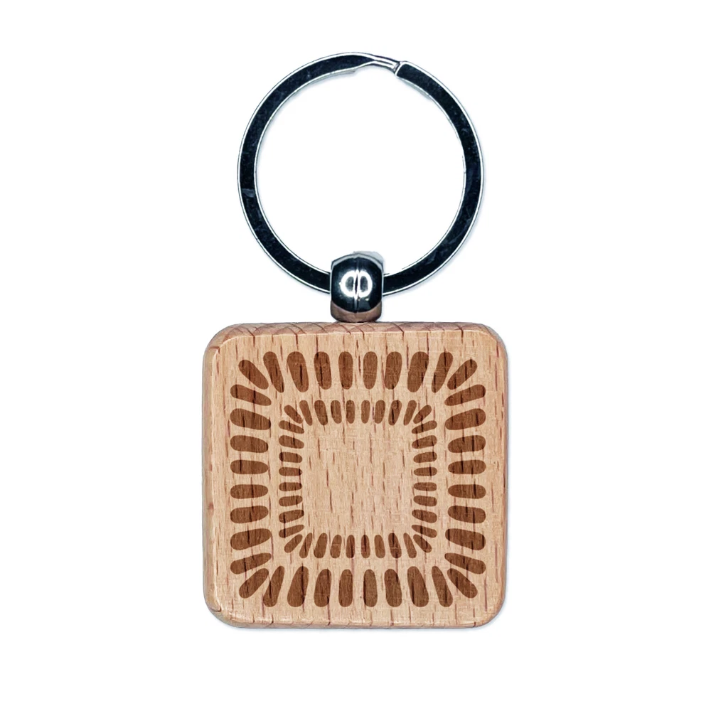 Modern Square Tile Engraved Wood Square Keychain Tag Charm