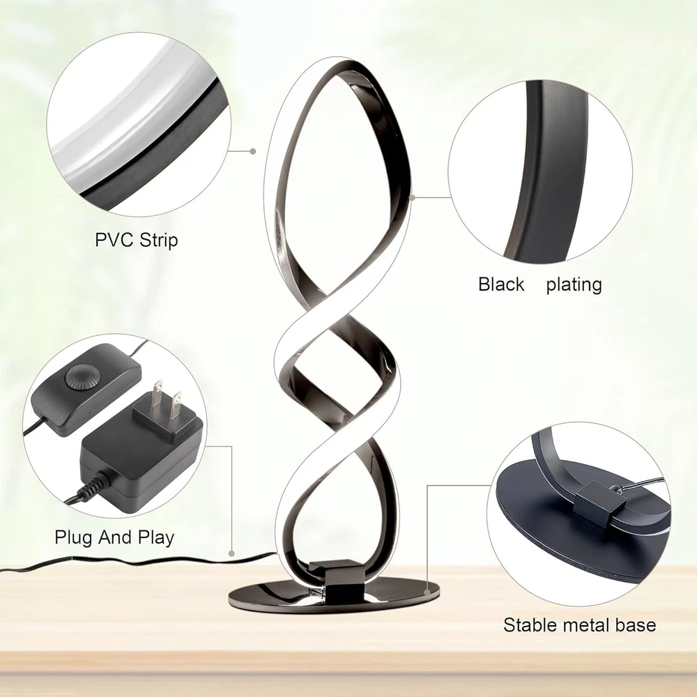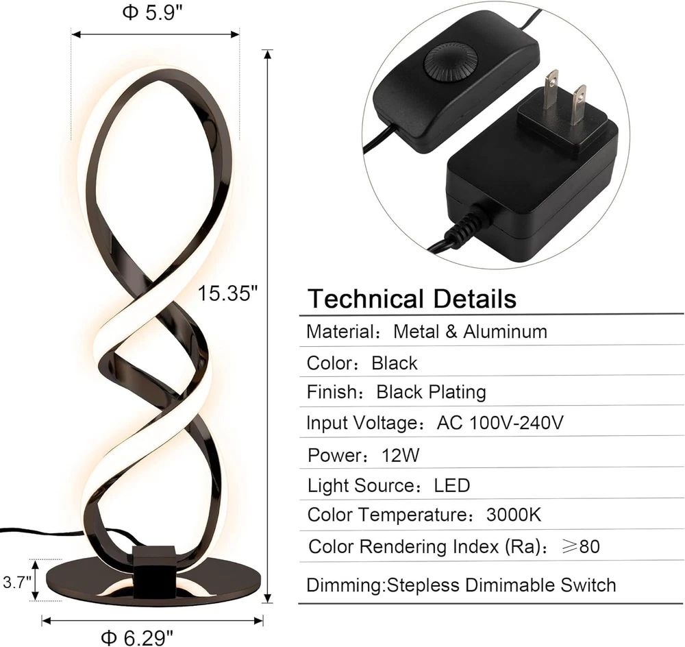 Store New Arrivals Add to Favorite View Feedback Contact Modern Table Lamp, Stepless Dimmable LED Spiral Lamp Black Unique Bedside Lamp, 12W 3200K Contemporary Nightstand Lamp, Warm White Office Desk Lamp for Bedroom Living Room Home Description Item model number HQ-4583-1T-A08 Light Source Type LED Style Modern Number of Items 1 Power Source Plug in Number of Light Sources 1 Control Method Touch Batteries Included? No Lighting Method Stepless Dimmable Mounting Type Tabletop Lamp Type LED Number of Pieces 1 Room Type Living room, Bedroom, Office, Art gallery, Hallway, Nightstand, Desk, and Table or Bedside. Product Dimensions 7.87"D x 5.32"W x 15.35"H Material Aluminum, Polyvinyl Chloride Installation Type Tabletop Controller Type Touch Finish Type Painted Specific Uses For Product Artistic aesthetic in any room, and Nightstand Lamp Manufacturer lighting Indoor/Outdoor Usage Indoor Country of Origin China Water Resistance Level Not Water Resistant Batteries Required? No Item Weight 2.55 Pounds Connectivity Technology USB Connectivity Protocol USB Special Features Energy Saving, Artistic Aesthetic, Eye Protection, Stepless Dimmable Special Feature Energy Saving, Artistic Aesthetic, Eye Protection, Stepless Dimmable Bulb Base GU24 Shade Color Black Color Temperature 3200 Kelvin Color Black Spiral - stepless Dimmable Wattage 12 watts Is Cordless? No Base Material Non-slip mat Is Waterproof False Shape Double Spiral Voltage 110 Volts Recommended Uses For Product Decoration Shade Material Metal Finish types Painted Switch Type Dimmer Size Double Spiral-15.35" Warm White Unique Double Spiral Design: The elegant Modern LED Bedside Table Lamp features a captivating double spiral design that adds a unique touch to your space. With a height of 15.35 inches, the double spiral lamp body and stable metal base create a stylish and cozy ambiance, making it the perfect choice for any environment Adjustable Brightness: Modern Spiral Nightstand Lamp emits a warm light (3200K) and allows you to adjust the brightness to create a brighter environment or a softer vibe with its stepless dimming switch. With its high-quality LED light strips, this lamp has a lifespan of at least 50,000 working hours, ensuring that you won't need to replace any light bulb Eye-Caring Light: Double Spiral LED Bedroom Lamp is designed to be eye-friendly, with LED light strips that effectively reduce flickering and harsh glare. The spiral design helps diffuse the light, preventing eye fatigue and discomfort even during extended use Artistic Aesthetic in Any Room: This Modern unique and sleek Spiral Table Lamp must be a perfect addition for living room, bedroom, office, art gallery, hallway, nightstand, desk, and table or bedside, Metal material, simple and beautiful, impressive artistic aesthetic to any room, suitable for table as modern home lamp Buy With Confidence: LED technology ensures low energy consumption and minimal heat production, helping to reduce your electric bill. The durable light source eliminates the need for replacements Product Description Spiral Modern LED table lamp The simple and advanced design style complements the modern decorative aesthetics. Built-in LED light-emitting chips and adjustable light source components, the lighting is comfortable and low energy consumption. Wide Application Bedroom Living Room Reading Room More Details about Adebime Table Lamp High Quality Metal Frame Non-Slip Base Black Weighted Base Stepless Dimming Button Modern Spiral Table Lamp Specification Information: Product Size: L6.29"*W3.7"*D15.35" Material: Metal+Aluminum Finish: Black Plating Linght Source: LED Style: Modern/Contemporary Input Voltage: AC 100V-240V Light Source: LED Features: Dimmable Adjustable: Stepless Brightness Non-Slip Base LED-Consumes Low Energy Led Life: ≥50000 hours Color Temperature: 3200K ABOUT US We offer the best prices around on high quality products. Our E-store includes media such as books, movies, music and games while offering electronics, toys, sporting apparel, clothing, tools, general home, garden items and more. SHIPPING We are always working hard to ensure your package arrives as soon as possible. Please understand that some factors like weather, high postal traffic, and the performance of shipping companies are outside of our control. We offer free shipping to the lower 48 states and ship within 2 business days of payment, usually sooner. We do not accept P.O. Boxes. Please provide a physical address. For shipping outside of the continental USA, we only use eBay's Global Shipping Program.The item is shipped to KY and then sent to the rest of the world. International customers are responsible for all duties and taxes. Continue to check out in order to calculate costs for shipping the item to your country. Messages regarding eBay's Global Shipping Program MUST be directed at eBay EXCLUSIVELY. RETURNS We offer a 30-Day Return Policy on items which you are not completely satisfied with. You have the option for a full-refund or an exchange of the item. No returns are available on items shipped outside of the USA. PAYMENT We accept PayPal. CONTACT US This page content is yet to come Please ad us to your favorite seller and visit again later Thank You CUSTOMER SATISFACTION We try our very best to make sure every customer is completely satisfied. If there's a problem, message us! We're happy to help. WE ACCEPT Copyright © 2021 AutoDS. | All Rights Reserved