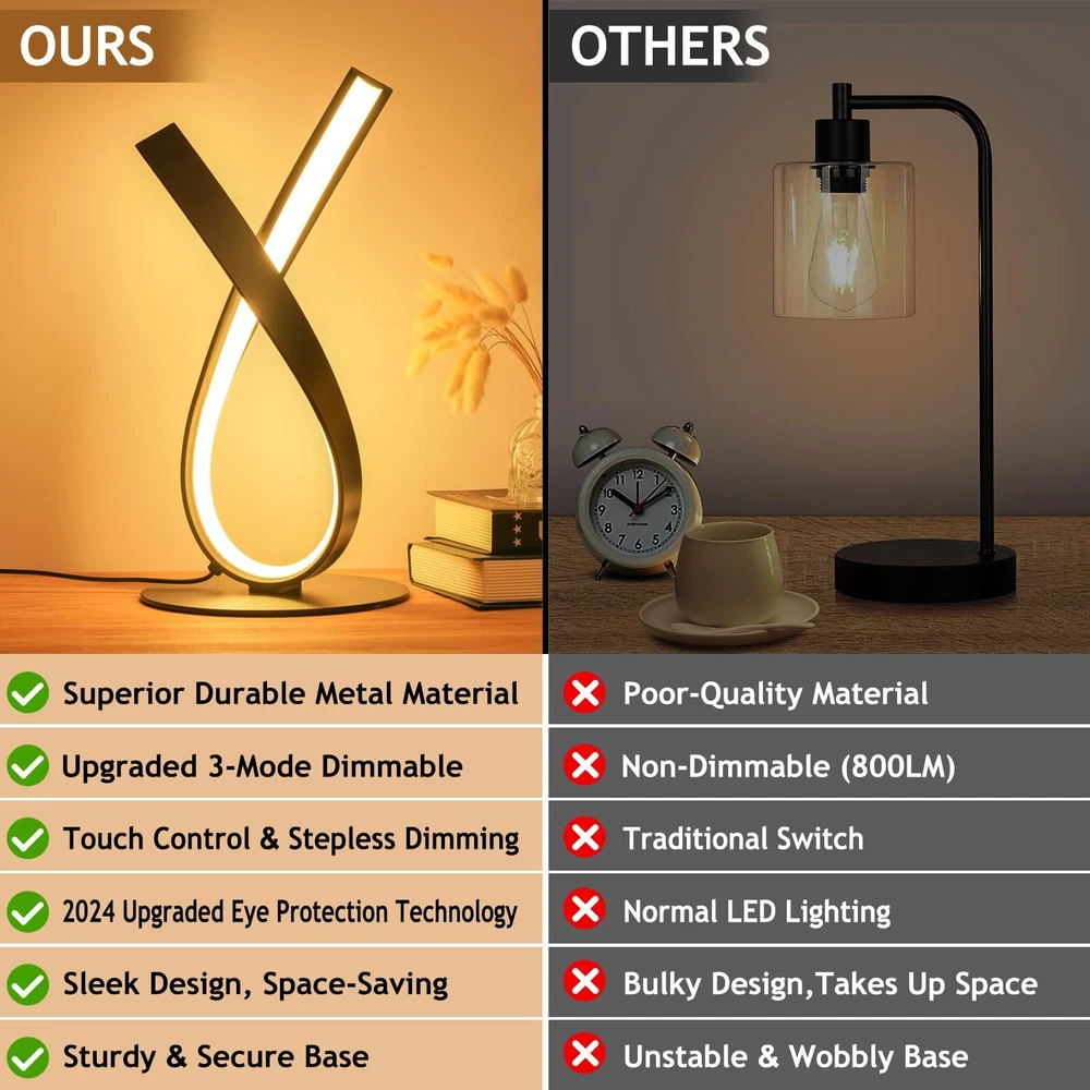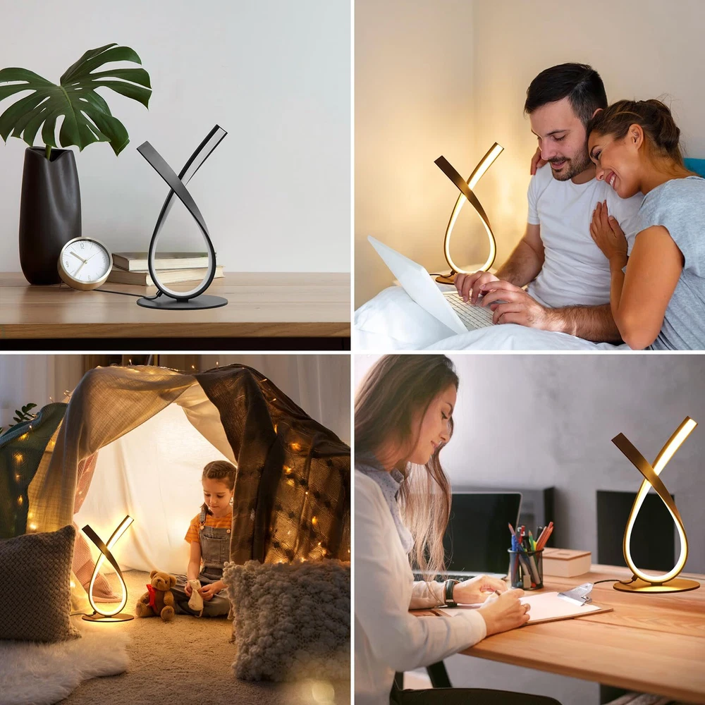 【Contemporary design to brighten your space with style】Our ribbon inspired table lamp will add a stylish décor and lighting effect to any space. The LED table lamp features a sleek modern design and is both a stunning visual home accessory when turned on or off and offers a functional solution to brighten your living room, bedroom, study or office. 【Adjustable brightness】Our ribbon inspired dimmable table lamp offers 3 colour modes: warm white, soft white and daylight white (2700K, 4000K, 5000K). You can choose the colour temperature for whatever ambience you’d like to create. Daylight white is suitable for reading, warm white is ideal for watching TV and soft white is perfect for socialising/dining. 【Memory function with seamless stepless dimming】You can dim or brighten your ribbon inspired table lamp in a stepless way so the transition from dim to bright is smooth and doesn’t lurch between settings. Set the ideal brightness to suit you. Our ribbon inspired LED table lamp also features a memory function that will record your preferred brightness. 【Affordable, energy efficient lighting】Our ribbon inspired touch table lamp includes a 12-watt in-built LED bead that draws less power and is specially designed to reduce costs and save you money. There’s also no need to stress about bead replacements. What a bonus! Benefit from an affordable lighting solution with our dimmable ribbon inspired table lamp. 【Perfect birthday/Christmas/housewarming gift】Compact in size, with its modern design and versatility that suits all interior spaces in the home and office, our ribbon inspired LED table lamp is a wonderful gift for your loved ones. Present them with an elegant décor piece that will add light and style to their life in the most stunning way.