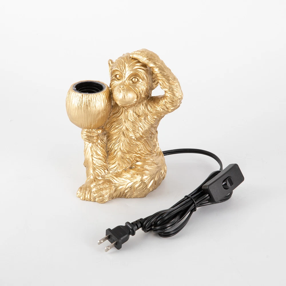 Specification Color: Gold Style: Modern Material: Resin Process: Painting, Carving Light Source:1* E26 Bulb (Not Included) Max. Bulb Power: 60W Efficiency: E Assembly Required: No Mounting Type: Tabletop Lamp Type: Table Lamp Power Source: Corded Electric Plug: US Standard Number of Items: 1 Voltage: 110V Applicable Area: 5-10 m²/53.82-107 ft² Power Cord Length: 1.8 m/5.9 ft Product Size (H*W): 11*18 cm/4.33*7.08 inch Modern Table Light Gold Monkey Desk Lamp Unique Resin Monkey Lighting Fixture Description The playful sitting monkey will be a bright addition to your nest and will enliven the space. Cra fted with attention to detail, it is not only functional but also serves as a piece of art. This unique and pleasing lamp will add radiance and color to your space, it's a great choice for those seeking a touch of royal charm in their bedroom. Key Features Fine Craftsmanship: This product adopts painting and carving techniques, and the monkey's shape is both unique and interesting, with a surprisingly realistic appearance, creating an eye-catching effect. Ideal Decoration : It is a decorative lighting accessory that adds a playful and whimsical touch to any desk or tabletop, serving as both a functional light source and a charming decor piece. Strong and Soft Light: This product can be self-configured with a high power (Max.60W) E26 bulb to emanate a beautiful and luminous radiance and fully light up your space with its open design. Build to Last : It is made of resin with the painting process, making it sturdy, anti-rust , durable, and still beautiful and practical after long-term use. Effortless Cleaning: It has a simple structure and a smooth surface. When dust accumulates, you only need to use a towel to clean it. Space-saving: The compact size ( 4.33 * 7.08 in) makes it ideal for placing on any surfac e without taking up too much space. Easy to Use: This product comes with a switch design that can be adjusted with just one press. The simple operation makes it easy for the elderly and children to grasp. Ideal Gift : The stylishness and beauty of the lamp make it an ideal choice as a housewarming or birthday gift for your family, lovers, friends, and kids. Protective Packaging : To prevent the product from being damaged during transportation, we packed it with foam to protect your products to the maximum extent possible. Customer Service: We aim to provide quality products and services. If you have any problems, please feel free to contact us. We will reply and solve the problem for you as soon as possible. Details E26 Lamp Head : It is compatible with various bulb types, such as LED, incandescent, and CFL within 60W, presenting different lighting effects. Steady Gesture: The monkey sitting with its feet touching the floor provides extra support, so you don’t have to worry that it may fall and break. Extended Power Cord: The 5. 9 ft length of the power cord is convenient to use, allowing you to power it easily. Application With a lighting area of about 53.82 - 107ft² , it is suitable for lighting and decoration in bedrooms, dining rooms, study rooms, living rooms, balconies, clothing stores, tea houses, cafes, hotels, etc., or on the bedside, end tables, working tables, and more. Specification Color: Gold Style: Modern Material: Resin Process: Painting, Carving Light Source:1* E26 Bulb (Not Included) Max. Bulb Power: 60W Efficiency: E Assembly Required: No Mounting Type: Tabletop Lamp Type: Table Lamp Power Source: Corded Electric Plug: US Standard Number of Items: 1 Voltage: 110V Applicable Area: 5-10 m²/ 53.82 - 107 ft² Power Cord Length: 1. 8 m/5. 9 ft Product Size (H*W): 11 * 18 cm/ 4.33 * 7.08 inch Package Included 1* Monkey Desk Lamp Notes Please be aware that the bulb is not included in the package, you need to prepare an E27 bulb yourself. We do not recommend using halogen bulbs. Please note that the illumination range of the monkey table lamp depends on the wattage of the light source you configure yourself. Please allow the slight color difference caused by the shooting light and the 1-3cm error due to manual measurement. Please make sure you do not mind before you order. Payment Delivery details Terms of sales About us Contact us Payment We accept ebay payment 。 Fees such as import duties, taxes are not included in the item price or shipping costs. These charges are the buyer's responsibility. Delivery details Shipping: 2-9 working days to: USA Terms of sales We maintain high standards of excellence and strive for hundred percent customer satisfaction. Feedback is very important to us. We hope that you contact us immediately before you give neutral or negative feedback, so that we can address your concerns. It is impossible to address issues if we do not know about them! About us Your satis faction is our ultimate goal. We work hard to earn your trust and future business. Our certified technicians have tested each item before shipping. The unit comes with 1 year limited warranty on all manufacturing defects. a) If you receive a defective item, you may return it or ask for a discount. Please contact us within 14 days after you receive the package. b) What you returned must be intact and in its original packaging as re? u. Customer is responsible for shipping costs of the returned item. c) We will cover the cost of shipping back t with the shipping rate indicated in the registration page. We will send you a new unit or refund the full payment you paid. Thank you. Contact us Business Hour Business Hour: Monday To Friday: 8:30 AM to 5:00 PM (Beijing China time) Due to time zones, our reply to your questions may not be immediately. But within above working time, we will reply your email within 24 hours. If it's non-workdays, please kindly be patient and wait till Monday. Please contact us with ebay message. Please feel free to contact us if you have any questions. Monday To Friday: 8:30 AM to 5:00 PM (Beijing China time) Due to time zones, our reply to your questions may 