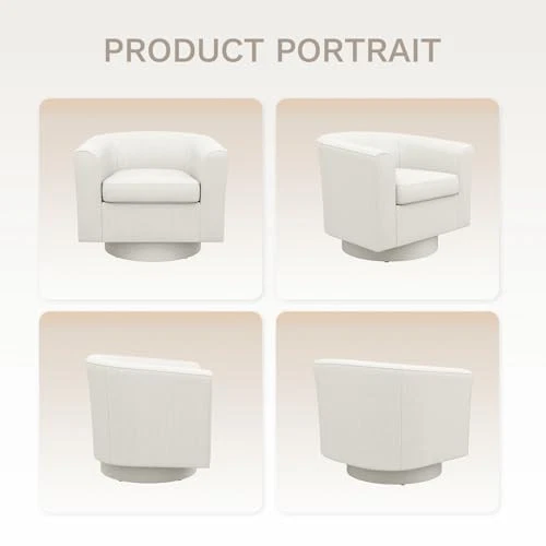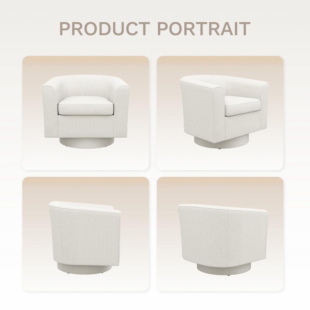 Upholstered Swivel Barrel Accent Chair with Ottoman, Modern Single Sofa Lounge Armchair Club Chair with Storage Space for Living Room Bedroom Office, Beige New Release - Fusion of Comfort and Design: Discover the latest in comfort with our Fabric Accent Armchair with storage ottoman, featuring a swivel metal base for a blend of modern functionality and aesthetic appeal. Upholstered in soft polyester blend fabric, this chair offers unparalleled comfort perfect for small spaces. 360-Degree Swivel Functionality: Enjoy effortless mobility with the 360-degree swivel feature. Ideal for dynamic environments requiring frequent adjustments in seating or viewing angles, this function allows smooth and easy movement. Enhanced Comfort Seating: Experience the ultimate in comfort and relaxation with our armchair with storage ottoman. The chair is designed to provide a luxurious seating experience, with its comfortable armrests and cushioned seat. The chair's sleek and modern design will add a touch of elegance to any room, making it an excellent addition to your home. Storage Space Available: barrel-shaped armchair with a matching storage ottoman included for added convenience, is a must-have for small spaces. The chair's compact design makes it ideal for apartments or rooms with limited space, while the included storage ottoman provides ample space to keep your living space tidy and clutter-free. Durable Metal Base for Stability: Built with a solid metal base, this chair provides robust support and stability, designed to endure daily use with a 300 lb weight capacity, ensuring long-lasting durability and a secure seating experience.