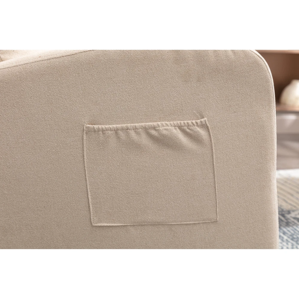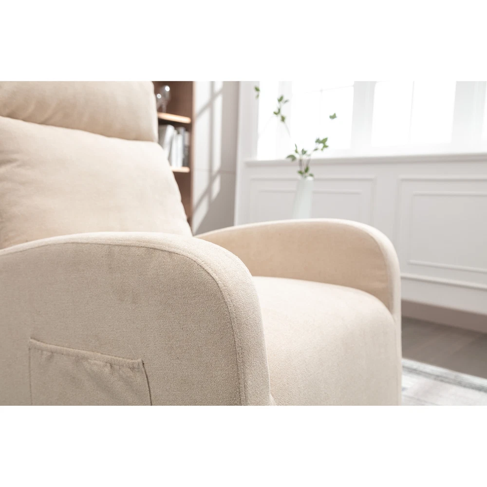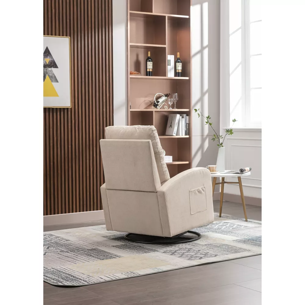Introducing the Modern Upholstered Swivel Glider Rocking Chair, perfect for nurseries. This Misty-colored rocking chair has a cozy high backrest and armrest, creating a comfortable space for both parent and baby. Upholstered with polyester and filled with foam, this chair has a weight capacity of 275 lb and a durable frame made of solid wood, plywood, and metal base. Its metal base allows for a smooth and gentle 360-degree swivel motion and forward and backward gliding. The included lumbar pillow offers additional lower back support, making it easier for moms and dads to lean back and relax.Features: 360-degree swivel motion and forward and backward gliding for a smooth ride High backrest and armrest provide comfort for both parent and baby Lumbar pillow included for additional lower Free Shipping Over $49.99* Details Modern Upholstered Swivel Glider Rocking Chair 360 Degree Arm Chairs for Nursery Product Description: Introducing the Modern Upholstered Swivel Glider Rocking Chair, perfect for nurseries. This Misty-colored rocking chair has a cozy high backrest and armrest, creating a comfortable space for both parent and baby. Upholstered with polyester and filled with foam, this chair has a weight capacity of 275 lb and a durable frame made of solid wood, plywood, and metal base. Its metal base allows for a smooth and gentle 360-degree swivel motion and forward and backward gliding. The included lumbar pillow offers additional lower back support, making it easier for moms and dads to lean back and relax. Features: 360-degree swivel motion and forward and backward gliding for a smooth ride High backrest and armrest provide comfort for both parent and baby Lumbar pillow included for additional lower back support Space-efficient design that doesn't take up much room in a nursery Tested for over 10,000 chemicals to improve indoor air quality