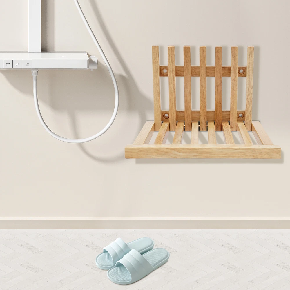 Shape: L-Shaped Type: Shower/Bath Chair gtin13: Does not apply Surface Finish: Eco-friendly Water-based Paint Brand: Unbranded Manufacturer Warranty: 2 Years Distance From Wall: 1cm/0.4in Color: Wood Material: rubber wood Package Size: 41*36*8cm/16.14*14.17*3.15inch Style: Modern MPN: N/A UPC: Does not apply Net Weight: 3kg/6.6lbs Mounting Type: Wall Mounted Gross Weight: 3.5kg/7.72lbs Folded Size: 34*5cm/13.4*2inch Unfolded Size: 41*34cm/16*13.4inch Maximum Load Capacity: 100kg/220.46lbs Features: Foldable, Water-Resistant