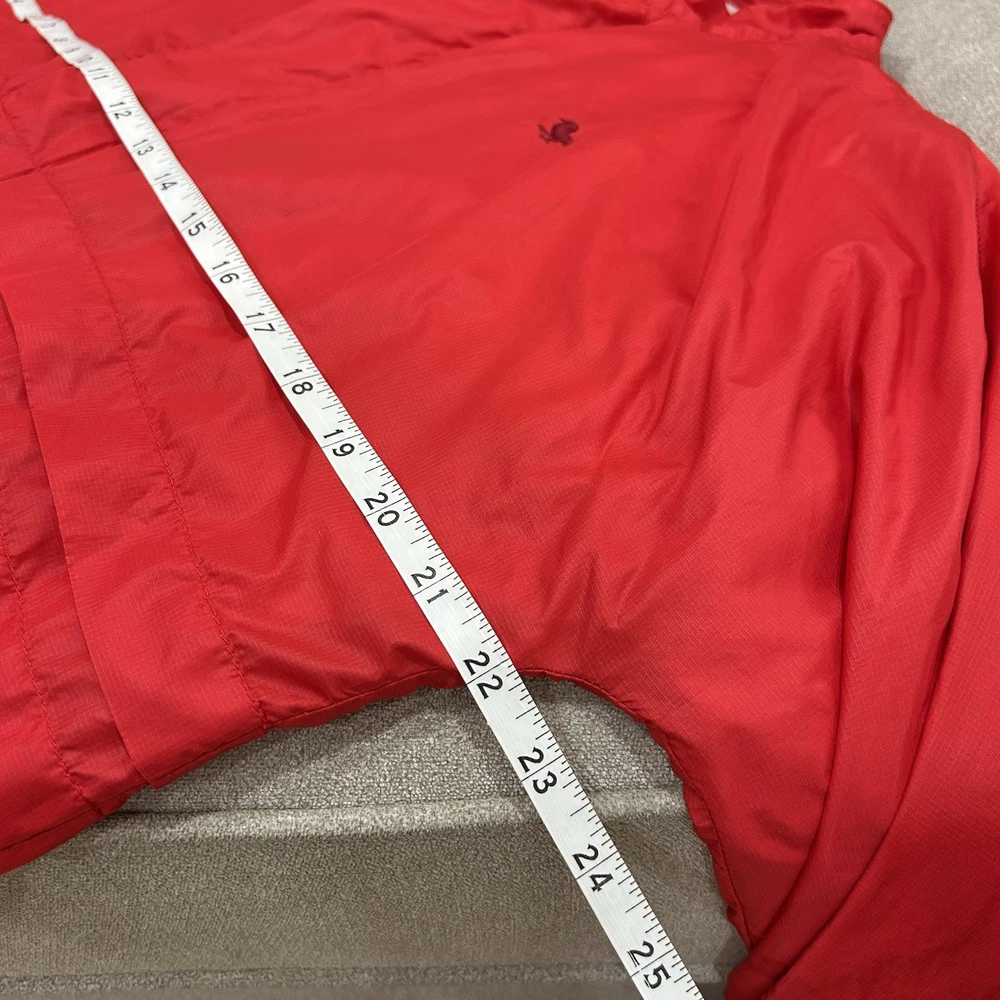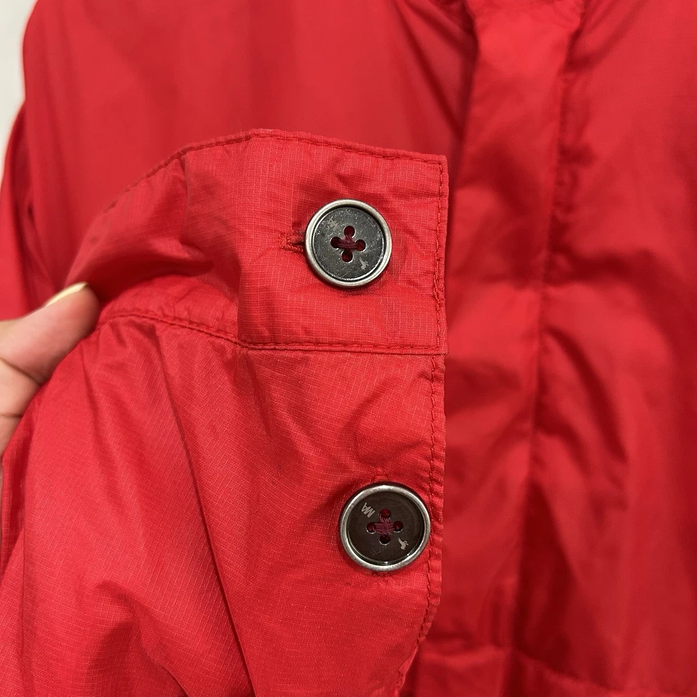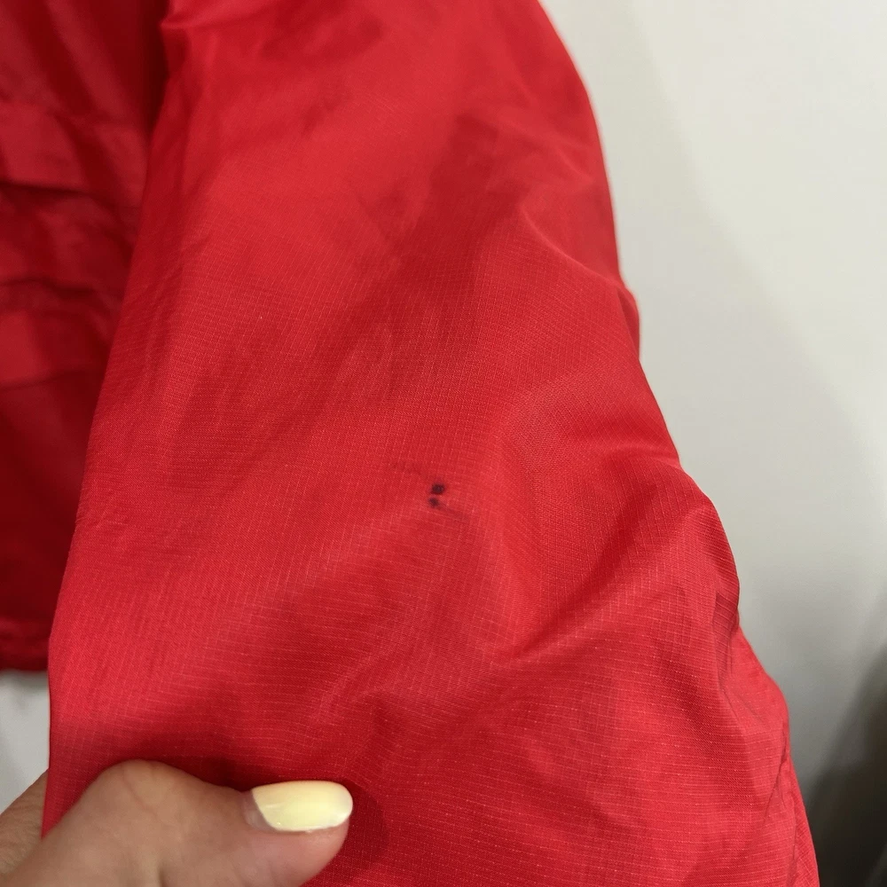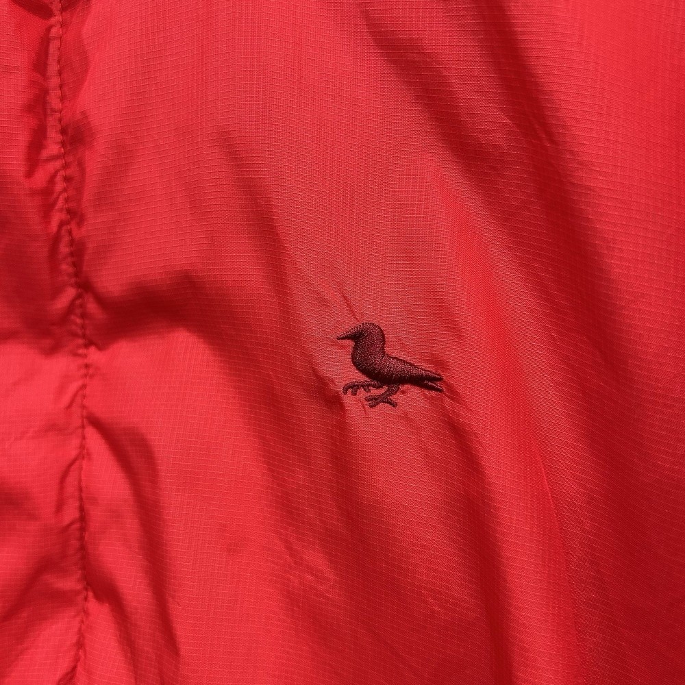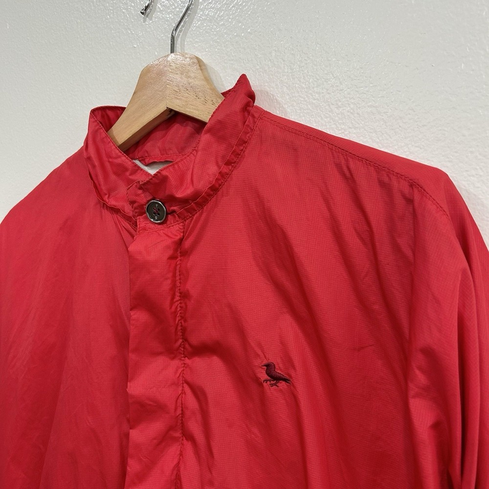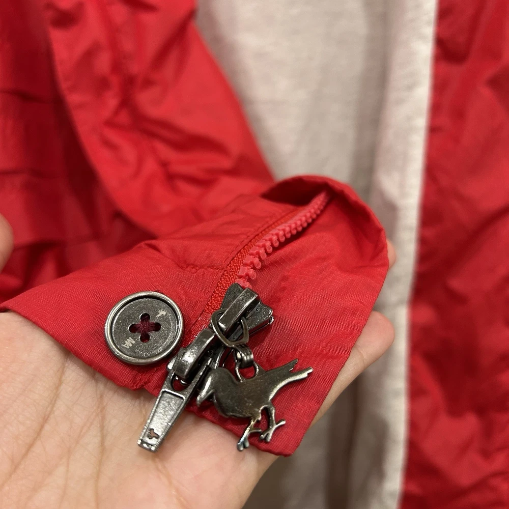 Rare vintage Modern Amusement men’s jacket in a bold red color, size Medium. This lightweight windbreaker features a front zip with button closure, embroidered bird logo at chest, and a unique interior lining with a large bird graphic. • Brand: Modern Amusement (discontinued, rare) • Size: Medium • Color: Red with black embroidered logo • Material: 65% Nylon, 35% Cotton | Lining: 100% Cotton • Style: Lightweight windbreaker / casual streetwear jacket • Condition: Good — light general wear but no major flaws. Still plenty of life left. • Approx. measurements: • Pit-to-pit: ~23” • Length: ~26.5” A must-have piece for vintage collectors, Y2K fashion lovers, and fans of surf/skate streetwear.