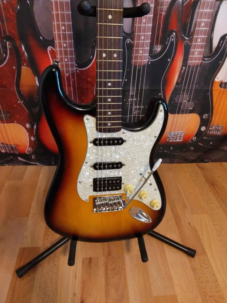 This electric guitar is a modified Fender Squier, in open box condition. with MIM loaded pickguard, perfect for any music enthusiast. (Neck 6.6k, middle 6.7k, bridge 11.8 k) Fender stratocaster waterslide logo added, Frets are in mint condition Set up with low action. Plays and sounds great. Shipping only in the 48 Continental states