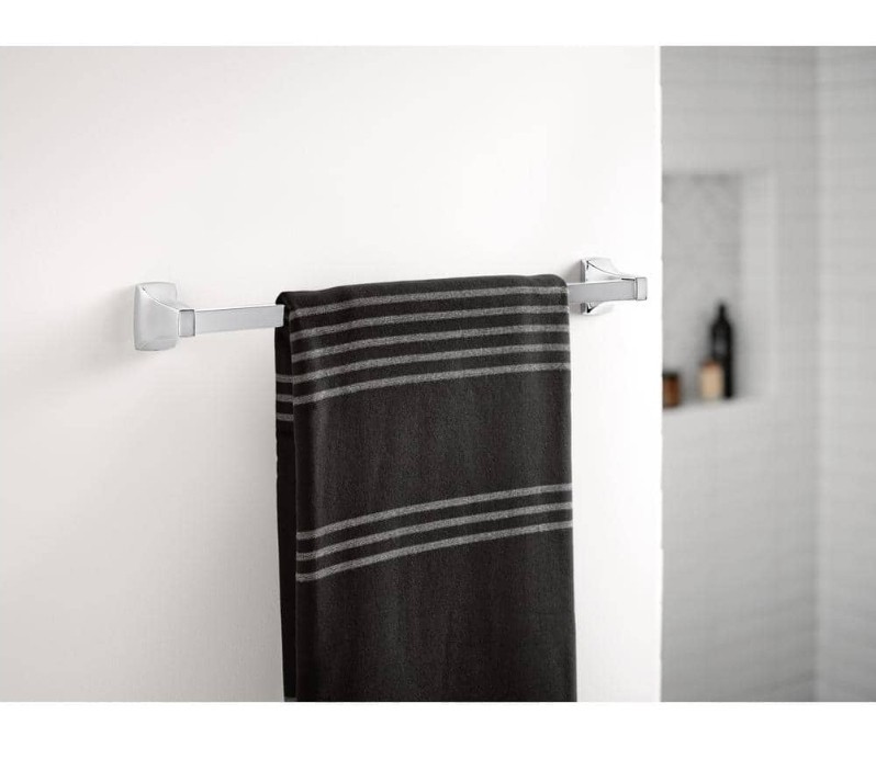 The Moen YB0193CH Adler 3-Piece Bath Hardware Set with 18 inch Towel Bar in Chrome is a stylish and modern accessory set perfect for adults in the bathroom. The set includes a towel set, toilet paper holder, towel ring, and towel rack, all in a sleek chrome finish. The elegant silver color and contemporary design make this set a great addition to any bathroom, adding a touch of sophistication to your home decor. The high-quality Moen brand ensures durability and reliability for years to come.