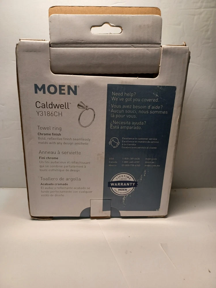 Elevate your bathroom's aesthetic with the Moen Caldwell Chrome Towel Ring, a sleek addition to your space. The towel ring is crafted from high-quality chrome, boasting a polished finish that complements a range of bathroom decors. Its durable construction ensures long-lasting performance and ease of use. Designed for convenience, the wall-mounted ring features a 6-inch diameter for a compact and modern look. The set includes all necessary mounting hardware, and while assembly is required, the instructions provide a straightforward setup process. Perfect for any adult looking to enhance their bathroom's functionality and style.