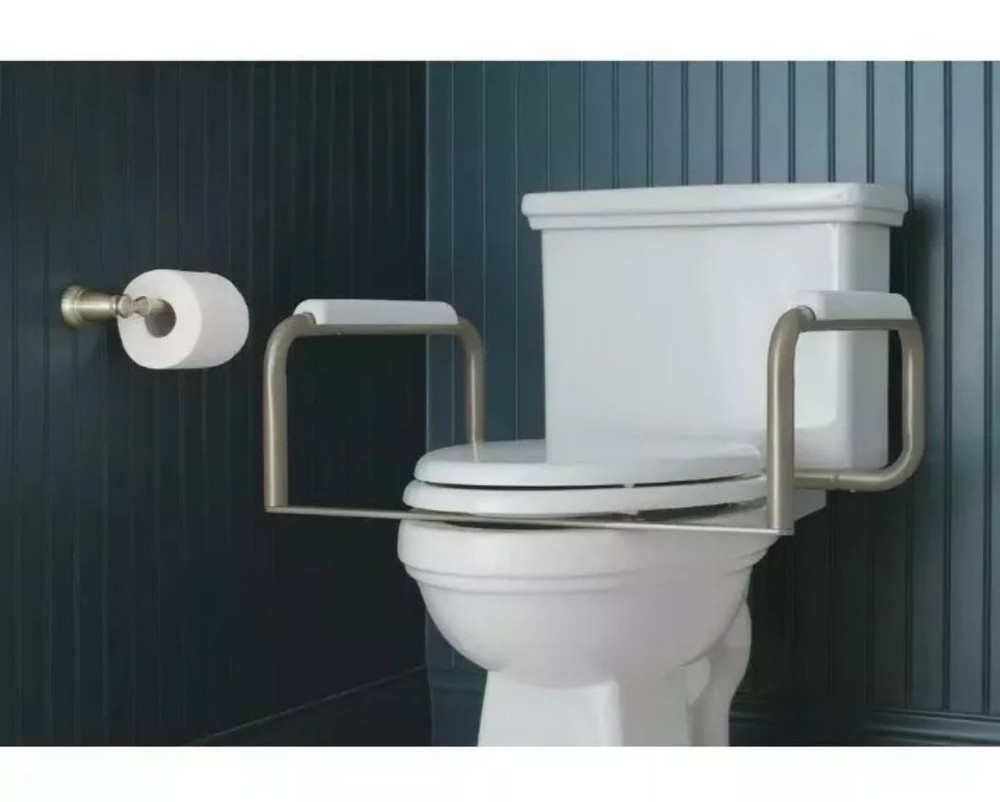 The Moen Toilet Safety Rails Home Care Collection in Satin Nickel is a versatile accessory set designed for adults in the bathroom. Made of durable plastic and metal, these safety rails can support up to 250 lbs and feature a sleek silver frame finish. The white color and stain nickel finish add a touch of elegance to the bathroom while providing essential support and stability for individuals in need. Perfect for enhancing safety and accessibility in the bathroom, these safety rails from Moen are a reliable and stylish addition to any home.
