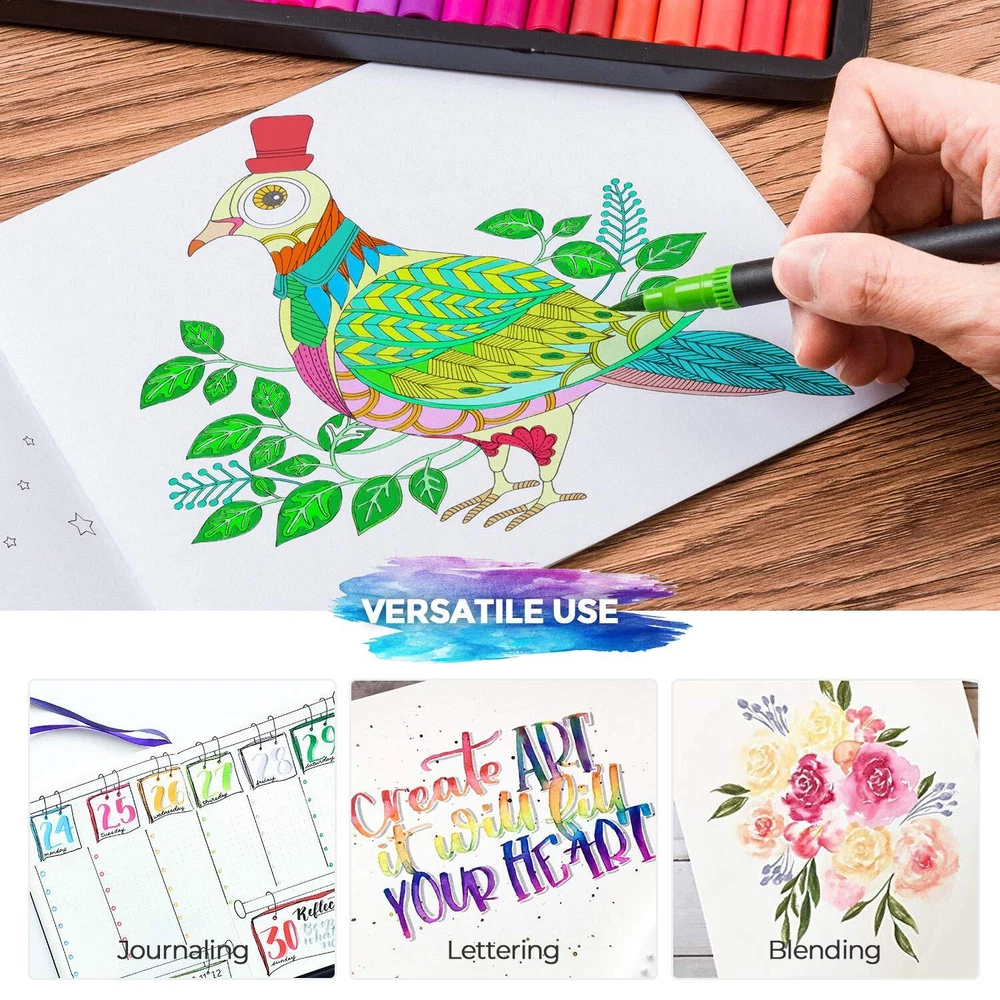 NOTEThe ink of this double-headed marker pen is water-based. Exposing the pen tip to the air for a long time will easily dry the pen ink. Therefore, we recommend that you close the pen cap after each use. Elevate your art with our dual tip markers featuring both brush tip and fine tip for versatile creativity; Great for sketching, drawing, and coloring One hundred colors markers give you plenty of options to create the color you want most Experience smooth writing and seamless blending with our dual tip markers, making it effortless to create beautiful gradients and effects Unleash your imagination with markers that boast a large capacity of water-based ink, ensuring vibrant and long-lasting colors Whether you're a professional artist or a beginner, our markers are ideal for projects of all sizes and styles, ensuring precision and quality with every stroke