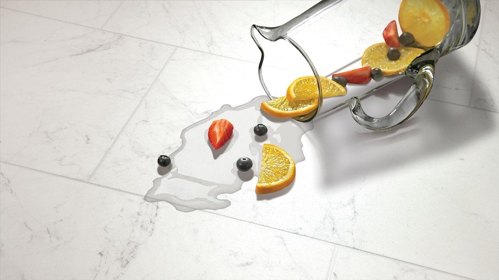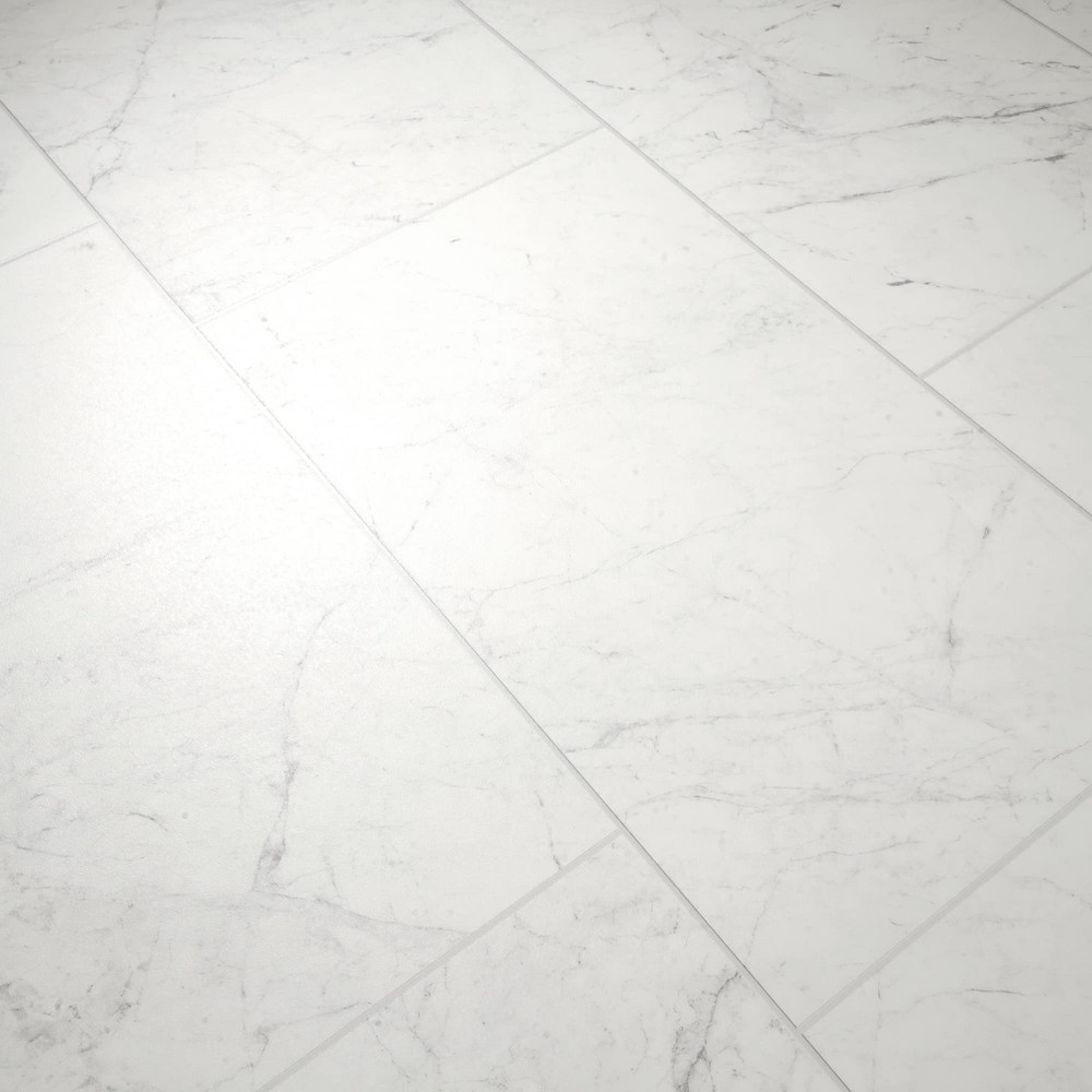 This easy-to-clean sheet vinyl repels dirt, making it kid and pet-friendly. The thick wear layer also resists scuffs making it great for high traffic rooms. Mohawk Elite waterproof sheet vinyl flooring in Calla Lily Marble features a white marble tile look with beautiful realistic veining. This durable and stylish flooring will quickly elevate your space and add incredible comfort underfoot. In most cases*, Mohawk Elite sheet vinyl can be installed without adhesive, making it a quick, easy, and renter-friendly DIY option. Simply roll out the product and trim it down to size. It's that easy. (*rooms <= 225 sq ft and/or no more than 1 seam) Install on any level, including basements, bathrooms, and high-traffic areas. No acclimation time is needed. All you need is a utility knife, acrylic double face tape for vinyl flooring, and a push broom. Adhesive can be used for permanent install. Graphics, product names, and color names may vary on packaging. Actual product is the same as displayed and ordered. Room scene photography represents flooring only. Accessories not included. Actual item may vary in color from screen representation.