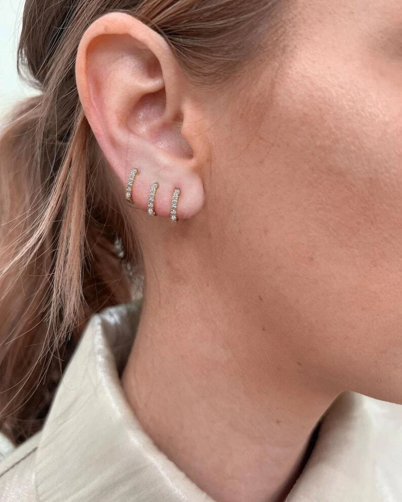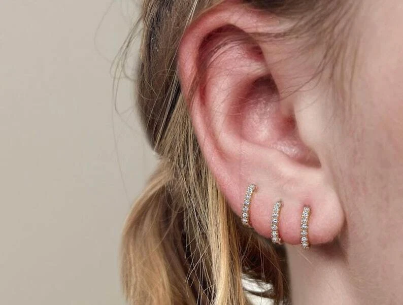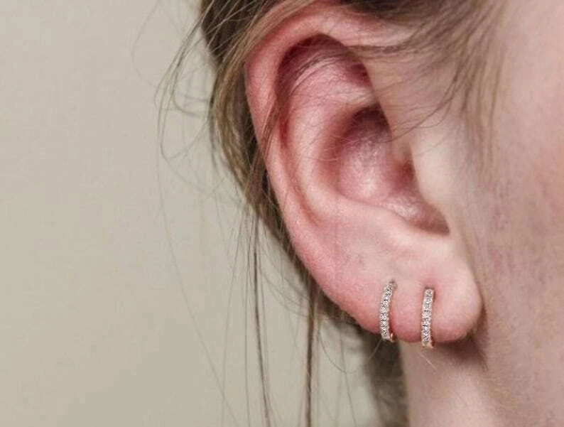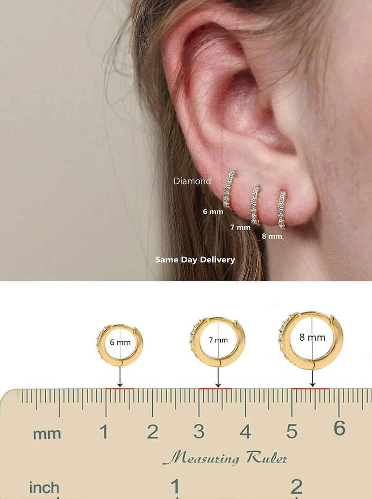 Handmade huggie hoop earrings•diamond huggies• 14k Yellow gold huggie earrings•pave diamond hoops•cartilage hoop earrings•helix hoop•tiny•small gold hoops DESCRIPTION -------------------- • Earring Size: → Earring gauge: 20 → Inner Diameter: 6mm→ Outer diameter: 8mm → Inner Diameter: 7mm→ Outer diameter: 9mm → Inner Diameter: 8mm→ Outer diameter: 10mm • Moissanite Details: → Shape: Round → Measurement: 1.3 mm → Number of Stone: 18 → Total Ctw: 0.20 → Color: Colorless → Clarity: VVS • Metal Details: → Metal Type: 14k Yellow Gold Warranty and Service: ------------------------------ • We offer a 1 Year warranty on all our Jewelry. • We also provide paid service after completion of the warranty. Thank you for visiting our store, see you soon. --------------------------------------------------------------