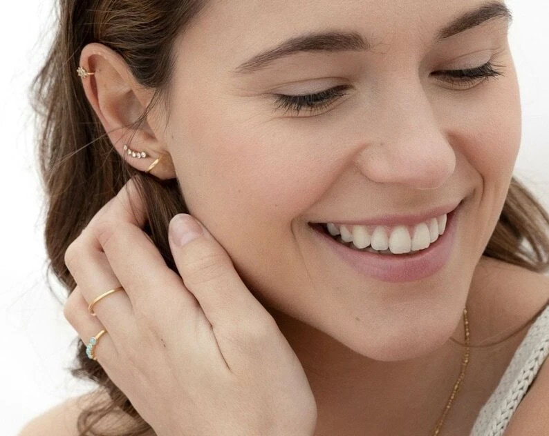 Handmade huggie hoop earrings• cartilage hoop•cartilage earring•moissanite hoops•tiny•small hoop earrings DESCRIPTION -------------------- • Earring Size: → Earring gauge: 20 → Inner Diameter: 7mm→ Outer diameter: 9mm → Inner Diameter: 8mm→ Outer diameter: 10mm • Moissanite Details: → Shape: Round + round → Measurement: 2.0 + 1.3 mm → Number of Stone: 2 + 16 → Total Ctw: 0.30 → Color: Colorless → Clarity: VVS • Metal Details: → Metal Type: Yellow Gold → Metal Purity: 14k Warranty and Service: ------------------------------ • We offer a 1 Year warranty on all our Jewelry. • We also provide paid service after completion of the warranty. Thank you for visiting our store, see you soon. --------------------------------------------------------------