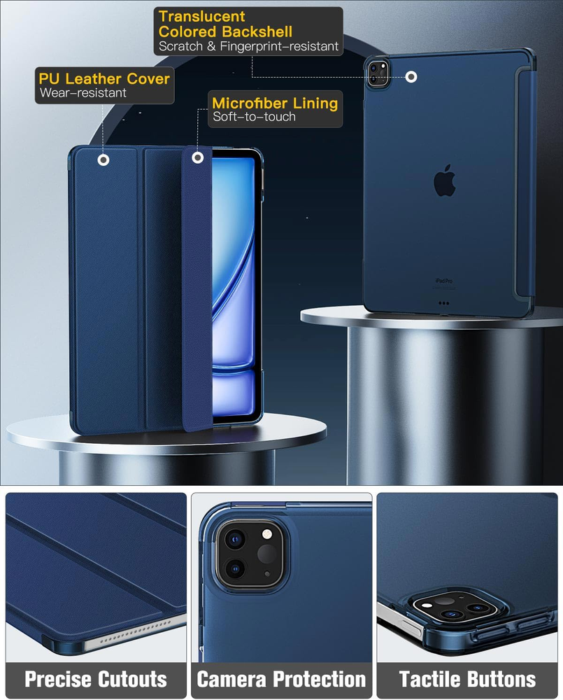 Store New Arrivals Add to Favorite View Feedback Contact Moko for Ipad Air 13 Inch Case (M3 2025/M2 2024), Ipad Pro 12.9 Case (6Th/5Th Gen 2022/2021), Slim Smart Shell Translucent Frosted Hard PC Back Cover, Support Pencil Pro/2Nd/Usb-C, Navy Blue Description Item model number P840401429136 Whats in the box 1* Tablet Case Color Navy Blue Product Dimensions 11.22 x 8.35 x 0.43 inches Country of Origin China Compatible Devices function(f) {var _np=(window.P._namespace("DetailPageProductOverviewTemplatesJava"));if(_np.guardFatal){_np.guardFatal(f)(_np);}else{f(_np);}}(function(P) { P.when('A').execute(function(A){ A.on('a:truncate:po-attribute-truncate-2:updated', function(data) { var isTruncated = !data.truncateInstance.getIfTextFits(); var seeMoreElement = document.getElementById('po-attribute-see-more-id-2'); if(seeMoreElement) { seeMoreElement.style.display = isTruncated ? '' : 'none'; } }) }); })); iPad Air 13 Inch M3 2025 (Model: A3269/A3271),iPad Air 13 Inch M2 2024 (Model: A2898/A2899/A2900), iPad Pro 12.9 inch 6th Generation 2022(Model: A2436/A2764/A2437/A2766), iPad Pro 12.9 inch 5th Generation 2021(Model: A2378/A2461/A2379/A2462) See more Item Weight 10.3 ounces Shell Type Soft Special features Lightweight Other display features Wireless Form Factor Cover Brand MoKo Manufacturer MoKo Perfectly Compatibility : Designed exclusively for iPad Air 13 Inch M3 2025 (Model: A3269/A3271),iPad Air 13 Inch M2 2024 (Model: A2898/A2899/A2900), iPad Pro 12.9 inch 6th Generation 2022 (Model: A2436/A2764/A2437/A2766) and iPad Pro 12.9 inch 5th Generation 2021 (Model: A2378/A2461/A2379/A2462); It is Not compatible with any other devices. Please check back bottom of your iPad to find the model number Apple Pencil Magnetic Attach Charging Supported : Side opening of this iPad Air 13 (M3 2025 & M2 2024)/iPad Pro 12.9 (6th 2022 & 5th 2021) case supports the Apple Pencil Pro /2nd/USB-C attached to your tablet magnetically to pair without taking off the case. Access to all features and controls Auto Wake/Sleep : Built-in magnetic strip, automatically wakes or puts your iPad Air 13 (M3 2025 & M2 2024)/ iPad Pro 12.9 (6th 2022 & 5th 2021) to sleep when the lid is opened and closed. Protects and extends battery life Quality Stand Cover : Synthetic exterior and smooth interior with hard PC back shell, Providing excellent protection for your iPad Air 13 Inch M3 2025 & M2 2024/iPad pro 12.9 6th 2022 & 5th 2021 against scratches, impacts, dust and bumps. The tri-fold front cover can support iPad in two standing positions for viewing and easy typing Well-made Protection : Our iPad Air 13 Inch 2025/2024, iPad Pro 12.9 2022/2021 Case is made of premium PU leather exterior, soft microfiber lining and coverage with translucent hard PC back shell, this case provides total full body protection against fingerprints, shocks, scratches and dust. The translucent frosted back cover allows you to see the icon through your favorite color Product Description The video showcases the product in use. The video guides you through product setup. The video compares multiple products. The video shows the product being unpacked. Designed for your iPad Air 13 Inch (M3 2025/M2 2024),iPad Pro 12.9 2022/2021,this MoKo case features a combination of super performance and style, accompany your high-tech and mobile life with maximum comfort and pleasure. 1 Support Pencil Pro/2nd 2 Auto Wake/Sleep 3 Drop Protection 4 Precise Cutouts 5 Climate Partner Seamless Blend of Quality, Portability, Beauty Free Your Hands Watching Mode The iPad case's built-in magnetic suction allows it to stand upright and stable, without the need for your hands or other objects to support the iPad, so you can fully enjoy binge-watching, keep in touch with family and friends on Zoom and FaceTime, making your personal leisure time more comfortable and convenient. Bring More Comfort Typing Mode A bad angle can lead to neck or back pain, which is why you need to find a good angle to do your things. The MoKo case provides you with a stable and comfortable typing angle to draw, write, or type. Don't let neck pain get in the way of your creativity or spoil your good mood to share happy moments with your friends. ABOUT US We offer the best prices around on high quality products. Our E-store includes media such as books, movies, music and games while offering electronics, toys, sporting apparel, clothing, tools, general home, garden items and more. SHIPPING We are always working hard to ensure your package arrives as soon as possible. Please understand that some factors like weather, high postal traffic, and the performance of shipping companies are outside of our control. We offer free shipping to the lower 48 states and ship within 2 business days of payment, usually sooner. We do not accept P.O. Boxes. Please provide a physical address. RETURNS We offer a 30-Day Return Policy on items which you are not completely satisfied with. You have the option for a full-refund or an exchange of the item. No returns are available on items shipped outside of the USA. PAYMENT We accept PayPal. CONTACT US This page content is yet to come Please ad us to your favorite seller and visit again later Thank You CUSTOMER SATISFACTION We try our very best to make sure every customer is completely satisfied. If there's a problem, message us! We're happy to help.