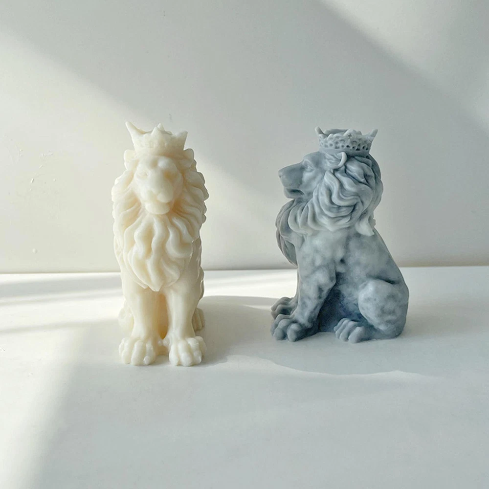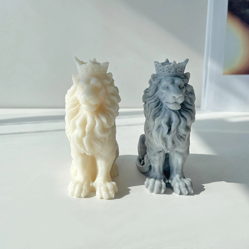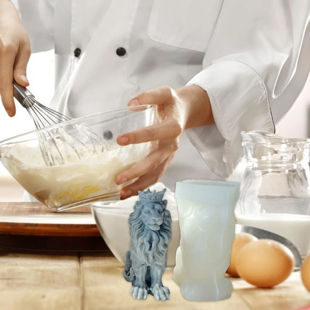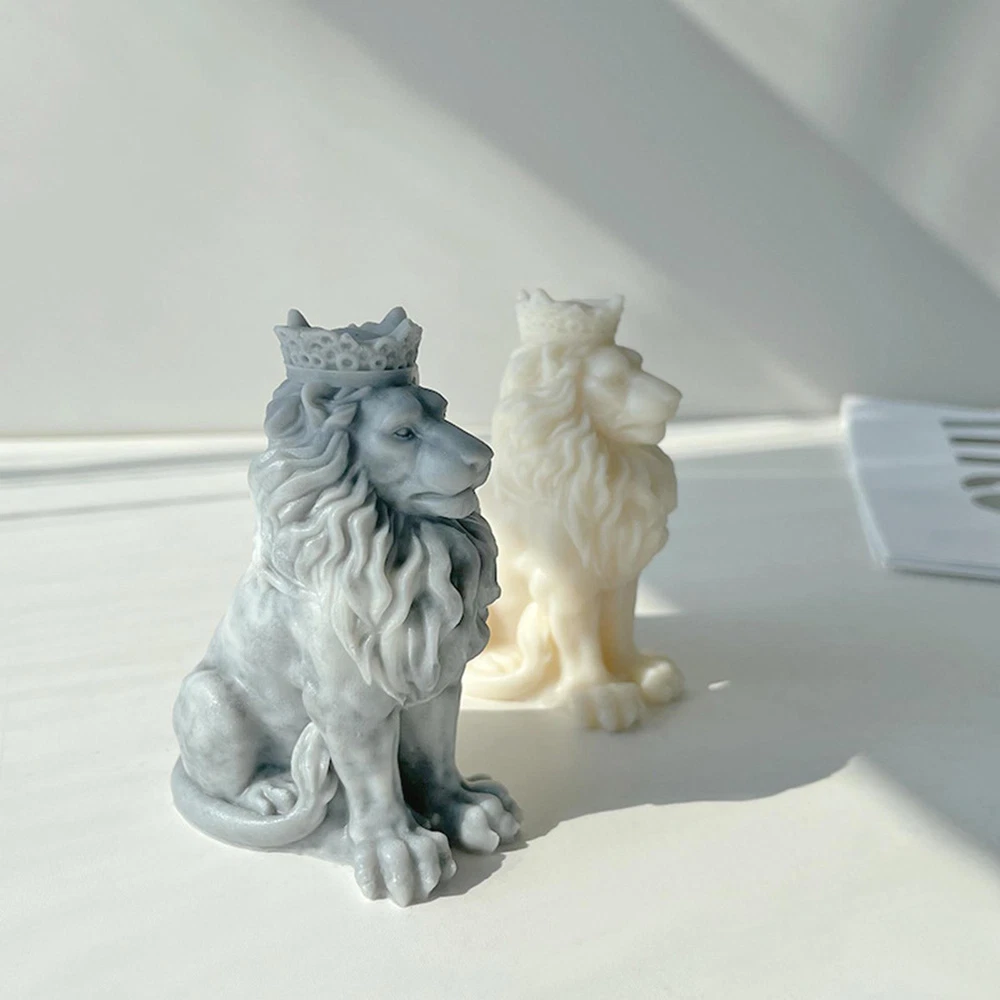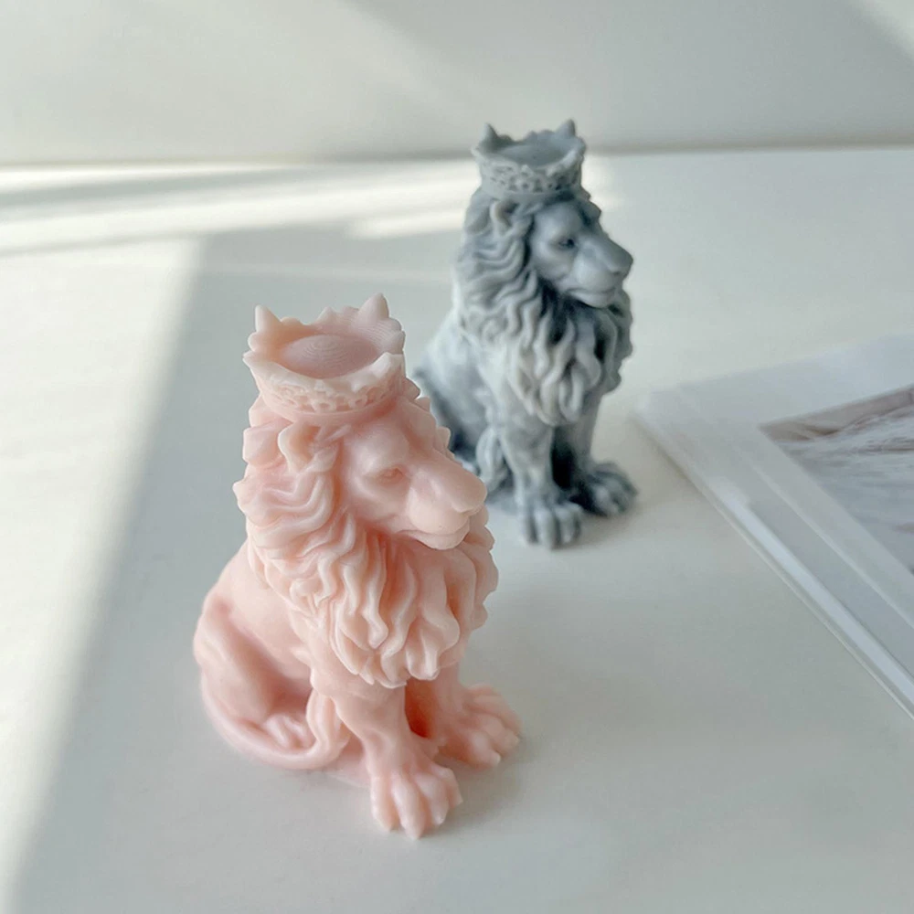 Moldes de velas de león 3D estatua de silicona hágalo usted mismo adorno de animales hecho a mano jabón artesanías
