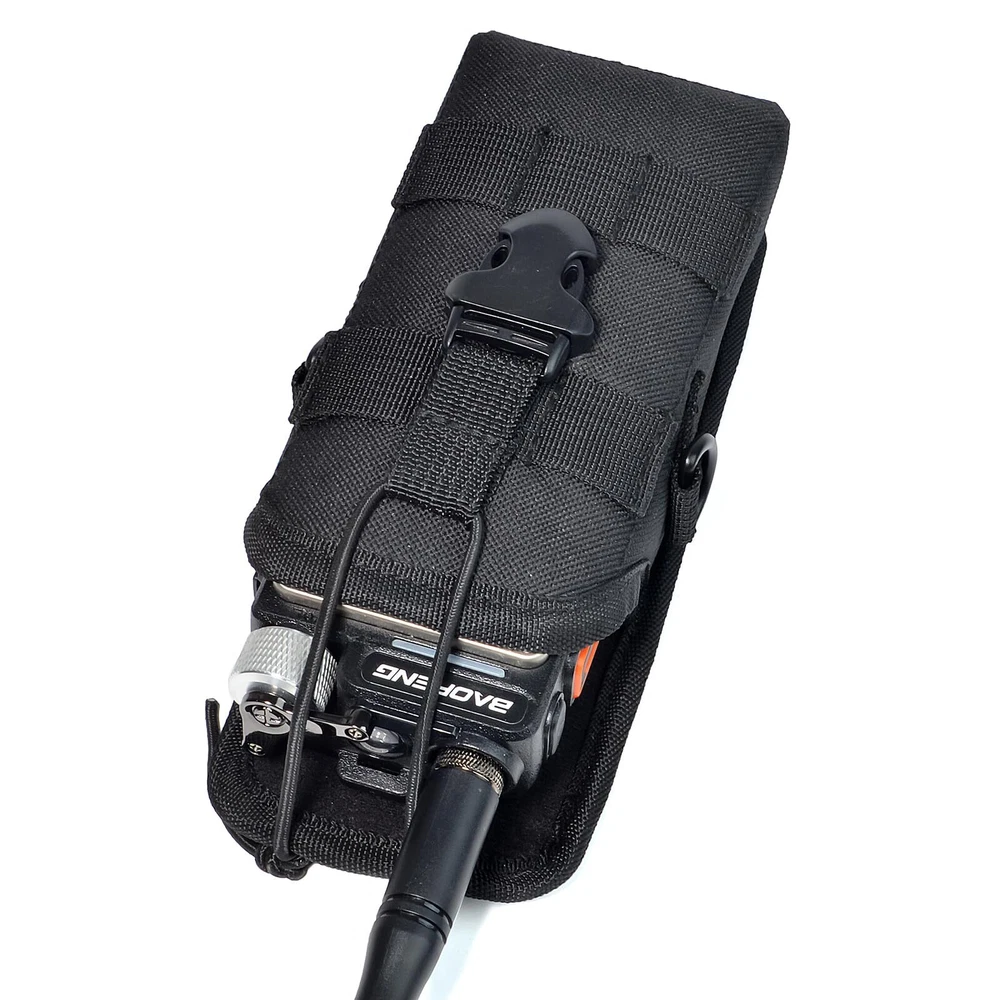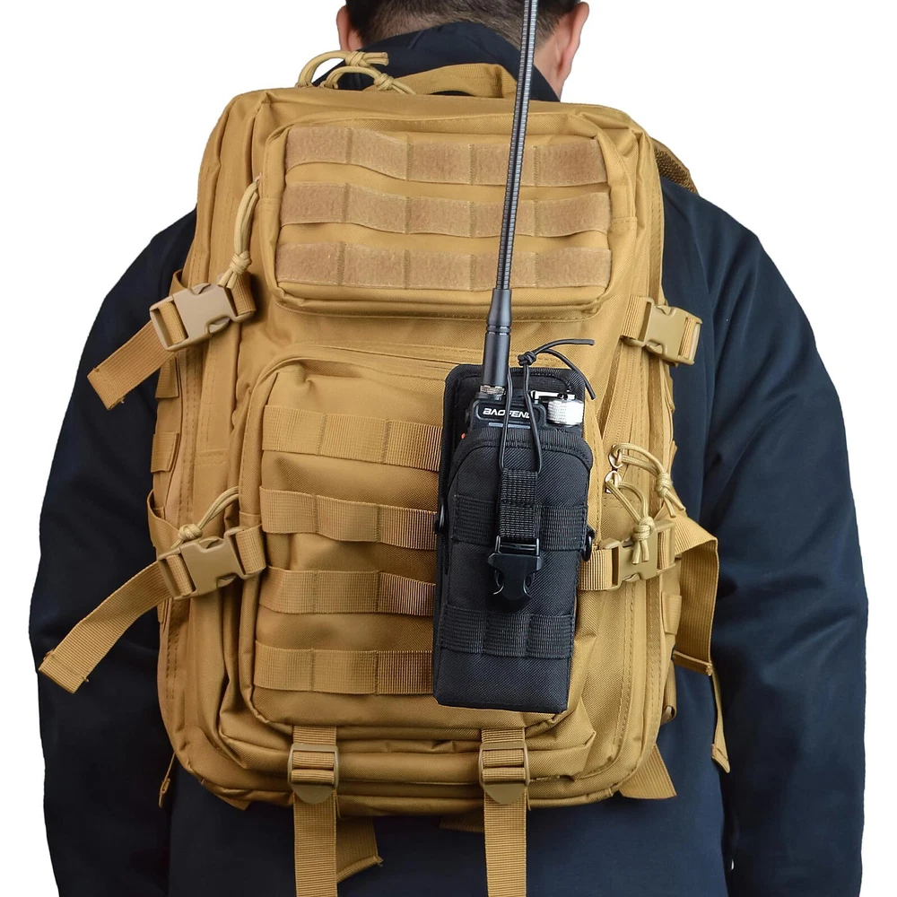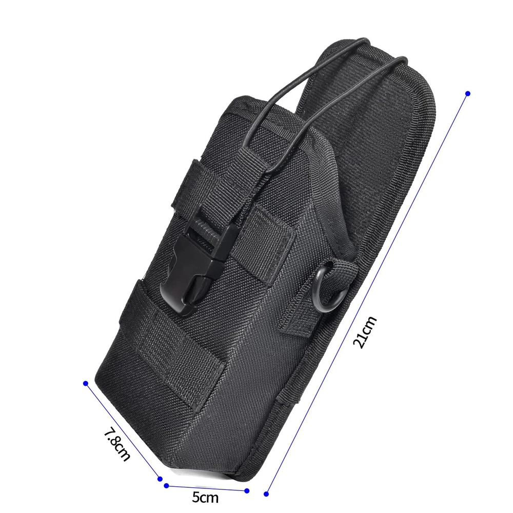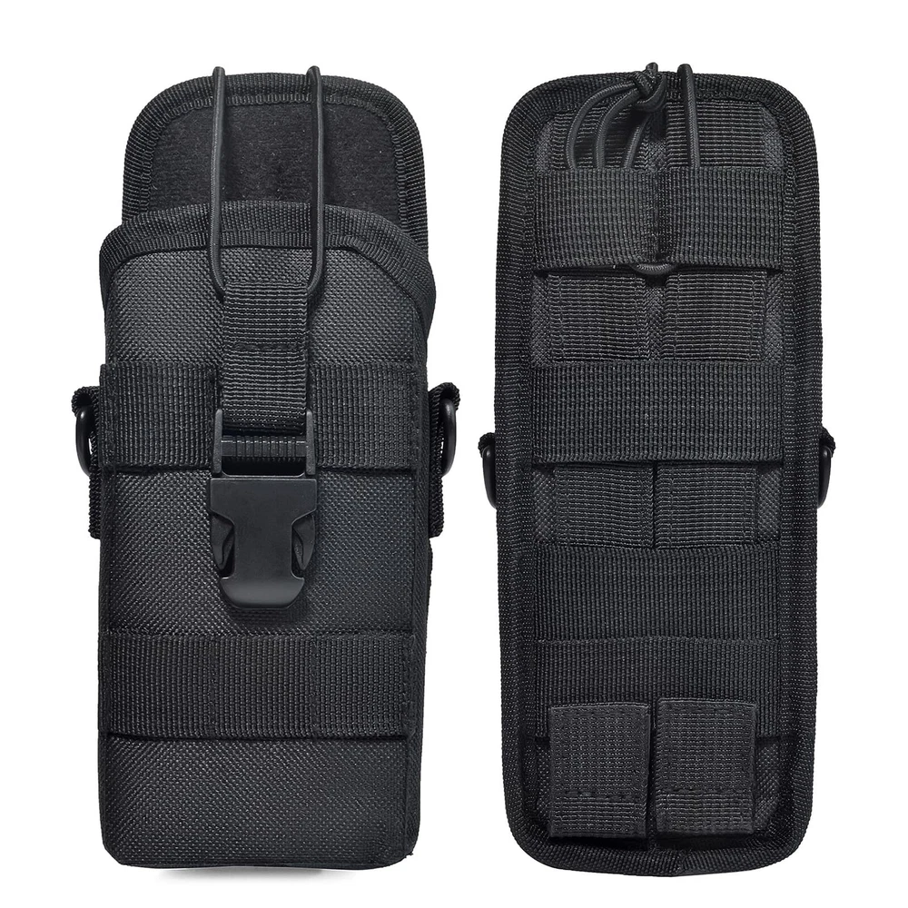 Molle radio pouch size: 3.1"L x 2"W x 8.3"H MOLLE system compatible, easy attach this radio holster to any of your molle tactical vest, backpack, duty belt and other equipment to use for additional storage and customization. This radio holster is made with high-quality nylon materials. Combined with the adjustable strong expansion rope, can be used for radios with the extended battery/battery pack. Come with an adjustable strap, make this molle pouch more multifunctional. Easy to take the radio out and put it back in. The volume knob of the radio is easily accessible, and the radio can be turned on/off without anything in the way. The molle radio pouch fits Baofeng UV-5R, Icom, Motorola, Yaesu, Kenwood portable walkie talkies. Molle radio pouch size: 3.1"L x 2"W x 8.3"H MOLLE system compatible, easy attach this radio holster to any of your molle tactical vest, backpack, duty belt and other equipment to use for additional storage and customization. This radio holster is made with high-quality nylon materials. Combined with the adjustable strong expansion rope, can be used for radios with the extended battery/battery pack. Come with an adjustable strap, make this molle pouch more multifunctional. Easy to take the radio out and put it back in. The volume knob of the radio is easily accessible, and the radio can be turned on/off without anything in the way. The molle radio pouch fits Baofeng UV-5R, Icom, Motorola, Yaesu, Kenwood portable walkie talkies.