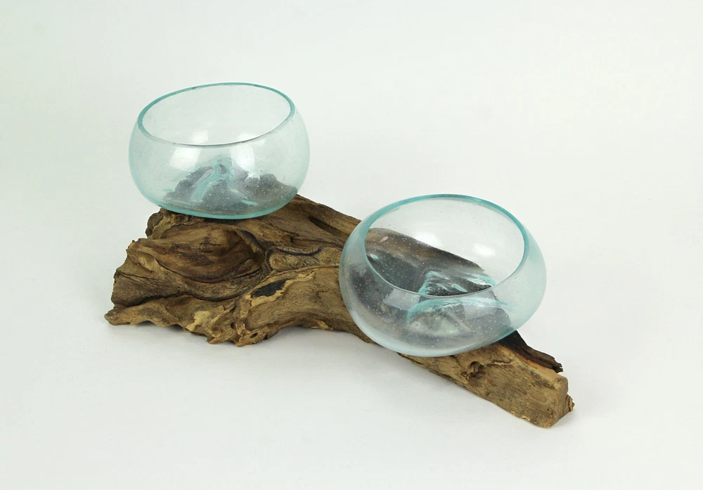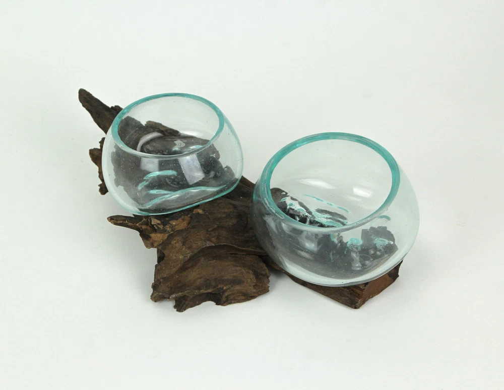 Measures Approximately 13 Inch Long, 5.75 Inch Wide, 5 Inch High (Due to the Handcrafted Nature Size and Shape is Approximate and Will Vary Slightly by Piece) Features 2 Molten Glass Vases Beautifully Formed Over a Natural Coffee Wood Root Base Creating a Stunning Earthy Sculpture You Can Use in a Variety of Ways Clear Glass Bowl Hand Formed Over an Organic Wood Base Creates a Unique Glass Scape Bottom Great for Decorating a Table, Counter or Desk Perfect for a Succulent Garden, Air Plants, Greenery, to Grow Herbs or Create One-of-a-Kind Decorative Desktop Terrariums or Fairy Garden A Stylish Home Decor Accent Inspired by Nature and Perfected by Artisans; Size, Shape and Natural Color Variations are Unique to Each Piece Our eBay Store About Us Add to Favorite Sellers Molten Glass On Coffee Wood Root Double Decorative Bowl Vase Plant Terrarium Measures Approximately 13 Inch Long, 5.75 Inch Wide, 5 Inch High (Due to the Handcrafted Nature Size and Shape is Approximate and Will Vary Slightly by Piece) Features 2 Molten Glass Vases Beautifully Formed Over a Natural Coffee Wood Root Base Creating a Stunning Earthy Sculpture You Can Use in a Variety of Ways Clear Glass Bowl Hand Formed Over an Organic Wood Base Creates a Unique Glass Scape Bottom Great for Decorating a Table, Counter or Desk Perfect for a Succulent Garden, Air Plants, Greenery, to Grow Herbs or Create One-of-a-Kind Decorative Desktop Terrariums or Fairy Garden A Stylish Home Decor Accent Inspired by Nature and Perfected by Artisans; Size, Shape and Natural Color Variations are Unique to Each Piece Truly versatile, this delightful double sculptural vase is a simple yet elegant accent piece full of earthy allure. Their organic intrigue brings visual excitement just for their looks alone, and you can fill them with anything you choose. The coffee wood root provides a beautiful base to the glass as it sinks in and forms to the natural contours of the wood. Plant a succulent garden, grow fresh herbs for cooking, create a fairy garden or arrange colorful stones, shells or dried flowers; the options are only as limited as your creativity. Organic intrigue and earthy allure artistically meld in this double glass and wood sculpture that is inspired by nature and perfected by artisans. NOTE: Due to the nature of the materials, no two are exactly alike. Measures approximately 13 inches long, 5.75 inches wide, 5 inches high. Product Details Color Brown Height 5 Length 13 Weight 2.75 LB