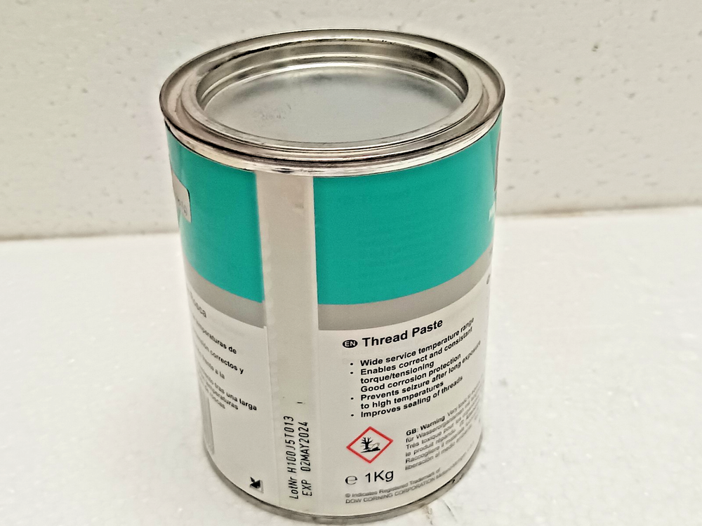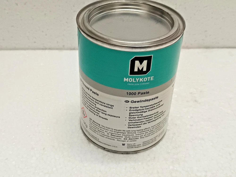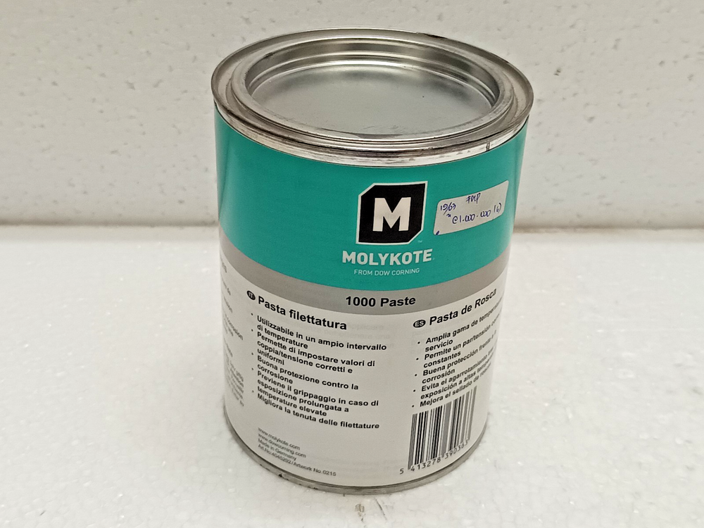 The Molykote 1000 Thread Paste is a high-quality lubricant grease produced by Dow Corning in Germany. With an expiration date of 2024, this 1 kg tin is perfect for various industrial applications requiring a reliable and long-lasting lubricant. The Molykote brand is known for its superior performance and durability, making it a trusted choice for businesses in need of a dependable lubricant solution.