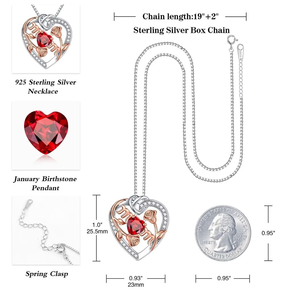 Jewelry Gifts: Mothers Day Gifts for Mom Birthday Gifts for Mom Anniversary Gifts for Mom Christmas Gifts for Mom Valentines Day Gifts for Mom Jewelry Attentiontion Please avoid contacting with the acid and alkali, corrosive substances. Please avoid the collision, so as to avoid surface scratches. Please avoid wearing it when sweating a lot, shower or sleep, etc. Please wipe them with soft cloth when you clean your jewelries. Best Gifts: The best gifts for your mom, when she receive the gifts, we believe it is a surprise! GIFTS FOR MOM: Unique necklace send to the best mom in your life and let her know how much she means to you. Our birthstone pendant is available in 13 colors and represents the different months of her birth. When she wear this heart necklace, she will genuinely happy for this little surprise. Comes with a delicate PU jewelry box, perfect gifts for your mom on Mother's Day. MATERIALS: The box chain and pendant are both made of 925 Sterling Silver. High quality platinum plating stuff that will not turn your skin to green, red or itchy. The box chain is strong enough and will not break. MEANING: The heart pendant with the word "mom" symbolizes your forever love for your mom. When she wear this birthstone necklace, she will never forget the long and deep love you shared. Perfect gifts for your mother on Mother's Day, Birthday, Christmas, Valentine's Day or other special days. SIZE: Chain is 19 inches + 2 inches (Adjustable). This length works on practically anyone. Our birthstone pendant necklace highlight understated elegance and refined femininity. The heart pendant is bigger than normal, it's an excellent gift choice for mom daily wearing home or office. AFTER SALES SERVICE: If you are interested in or question about our birthstone necklace, please contact us and we will answer your question within 24 hours and give you a satisfactory answer.