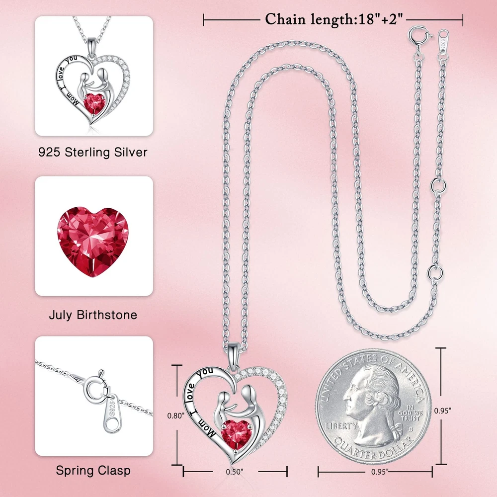 925 Sterling Silver Heart Birthstone Pendant Necklace: Size: 18"+2" Material: 925 Sterling Silver Package: The heart birthstone pendant necklace is packaged well with a Delicate Card,an Adorable Little Envelope, a Round Card, a Polishing Cloth and an Box. Jewelry Gifts for Mom: Mom Gifts Birthday Gifts for Mom Mother's Day Gifts for Mom Valentine's Day Gifts for Mom Christmas Gifts for Mom Best Gifts: Best Gifts for your mom. She will love it the moment she see it. We believe it will be a sentimental surprise for her. Jewelry Attention: When undressing the necklace, wipe each piece with a clean soft cloth to remove oils and perspiration. MEANING: The heart pendant engraved with the words "Mom I love you" symbolizes your forever love for your mom. At the center of the pendant is a love heart birthstone and it represents the month of her birth. When she wear this birthstone necklace, she will be the focus in any occasions and genuinely happy for this little surprise. Perfect gifts for your mom on Birthday, Mother's Day, Christmas, Valentine's Day, Anniversary or other special days. MOM GIFTS: The dainty heart necklace comes with a beautiful gift box, a round card and an adorable little Envelope, ready for giving. And our packaging is 99% biodegradable. Perfect gifts for your mom on Christmas, Mother's Day, Valentine's Day, Birthday and other special occasion. MATERIALS: The chain and pendant are both made of 925 Sterling Silver. This is a high quality stuff that will not turn your skin to green, red or itchy. The chain is strong enough to wear for a long time. SIZE: Chain is 18inches + 2 inches (Adjustable). This length works on practically anyone. It’s an excellent gift choice for your mom daily wearing home or office. AFTER - SALES SERVICE: If you are interested in or question the mom birthstone necklace, please contact us in time. We will reply you within 24 hours and give you a satisfactory answer.