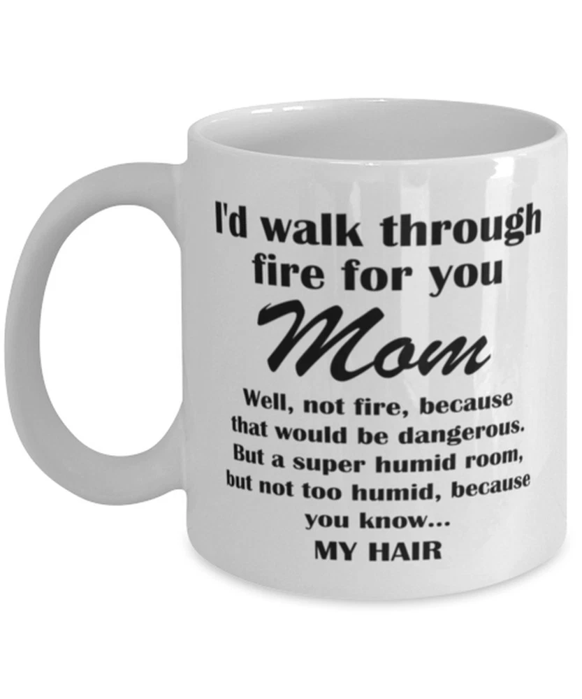 Mom Funny Coffee Mug I'd Walk Through Fire For You Mom Mothers Day Mug Gift Mug Product Details.. This high quality 11oz. ceramic white mug has a premium hard coat that provides crisp and vibrant color reproduction sure to last for years. Perfect for all hot & cold beverages. The highest quality printing possible is used. It will never fade no matter how many times you wash it. Material: 100% Ceramic. Print both sides. Dishwasher and Microwave Safe. High Gloss + Premium White Finish. Printed in the U.S.A. Personalized & Custom. We support personalized and custom mug to add custom, when placing an order, you can add notes to the "order note" in shipping address section. Also you can contact us directly via message. Shipping Info. Ready to ship in 1 to 2 business days, All products are made-to-order and proudly printed in the United States. Shipped by USPS and DHL, You will receive your order in 5-7 days. Replace & Refund. All products are defective during shipping broken, chipped will be replaced free of charge. You are not satisfied with the product, we will refund 100% money to you. If any other issues arise, please do not hesitate to message, we would be more than happy to assist you.
