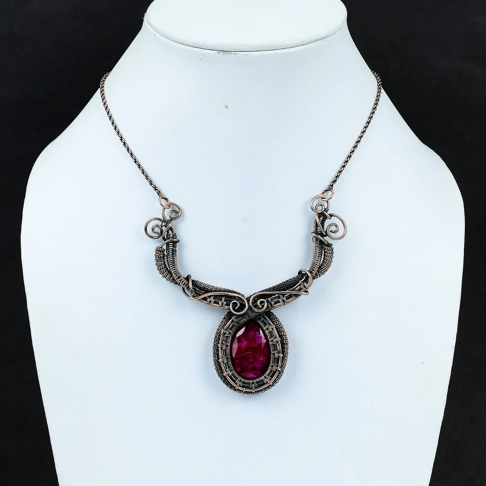Mom's Day Deal Handmade Kashmir Rubi Wire Wrapped Copper Chain Necklace