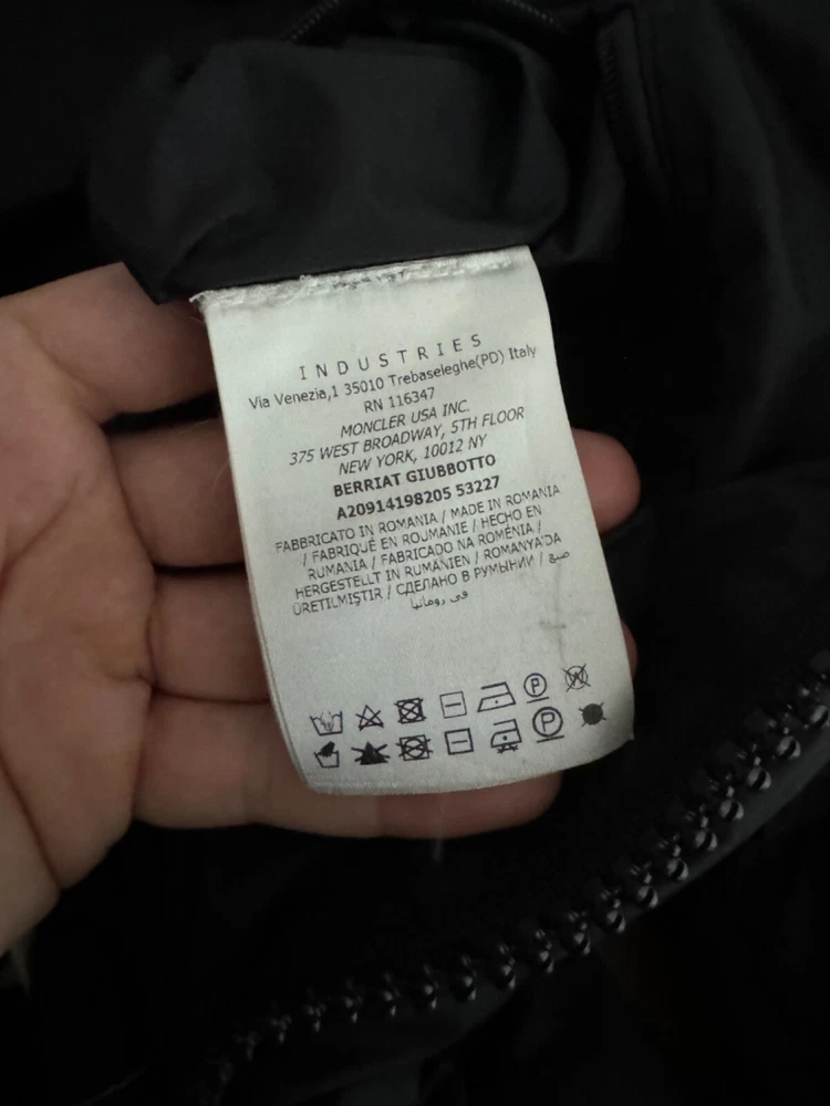 Moncler Berriat jacket Size 4 (L/XL) in black Used but good condition, just some small scratches below the badge (pic 3) and the cartoon missing (pic 7). π Free worldwide shipping π All items are shipped as LOW VALUE GIFTS π― 100% authenticity guaranteed π All listings have pics with the measurements, compare them to a similar item you own to know exactly if/how it fits! (Usual) delivery times: β’ Europe/UK - 2/5 days β’ USA/Rest of World - 5/9 days