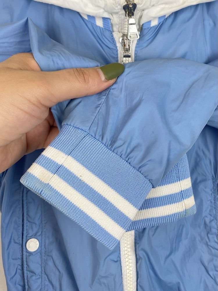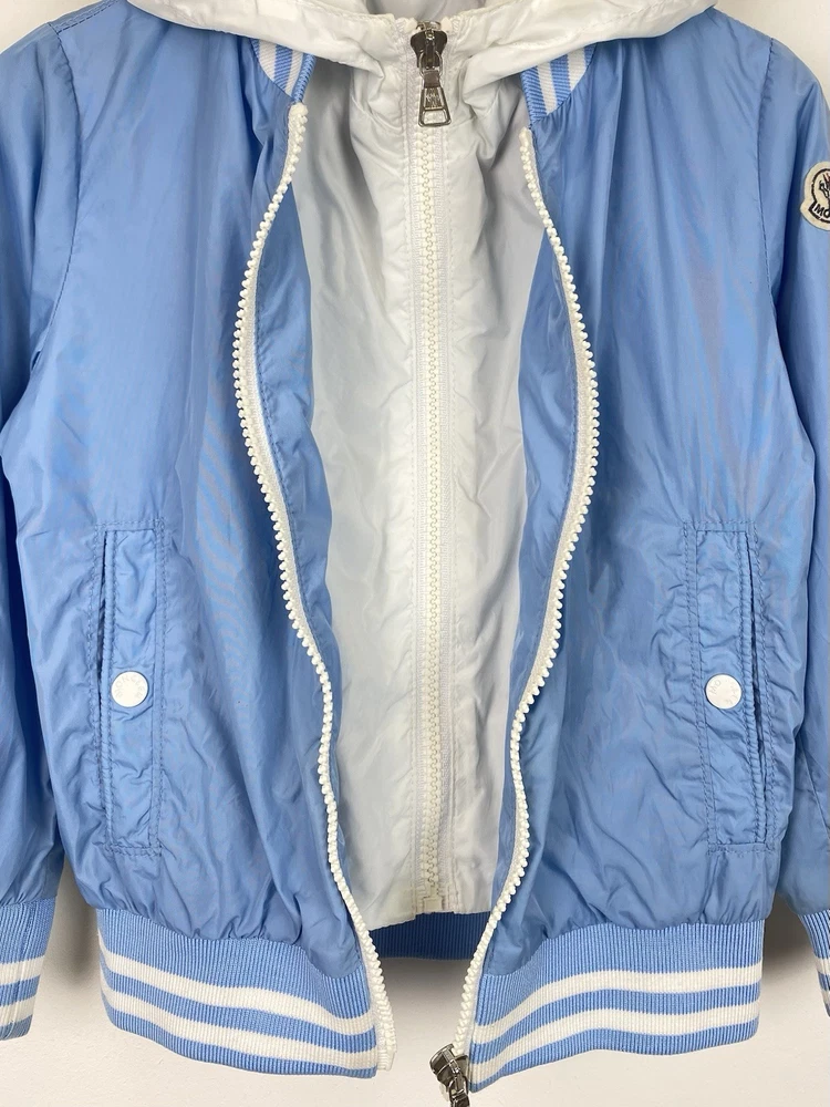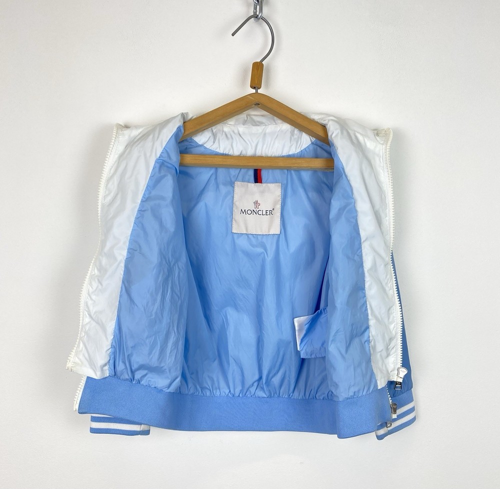 1. This Moncler jacket is perfect for little ones—soft, stylish, and lightweight. The baby blue color is adorable, and the hood adds extra coziness. The size fits as expected (3 anni/100cm), and the condition is great aside from a minor stain. The seller is very responsive and helpful—definitely recommend!