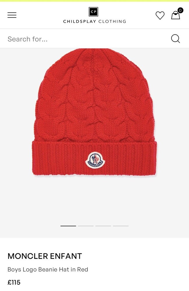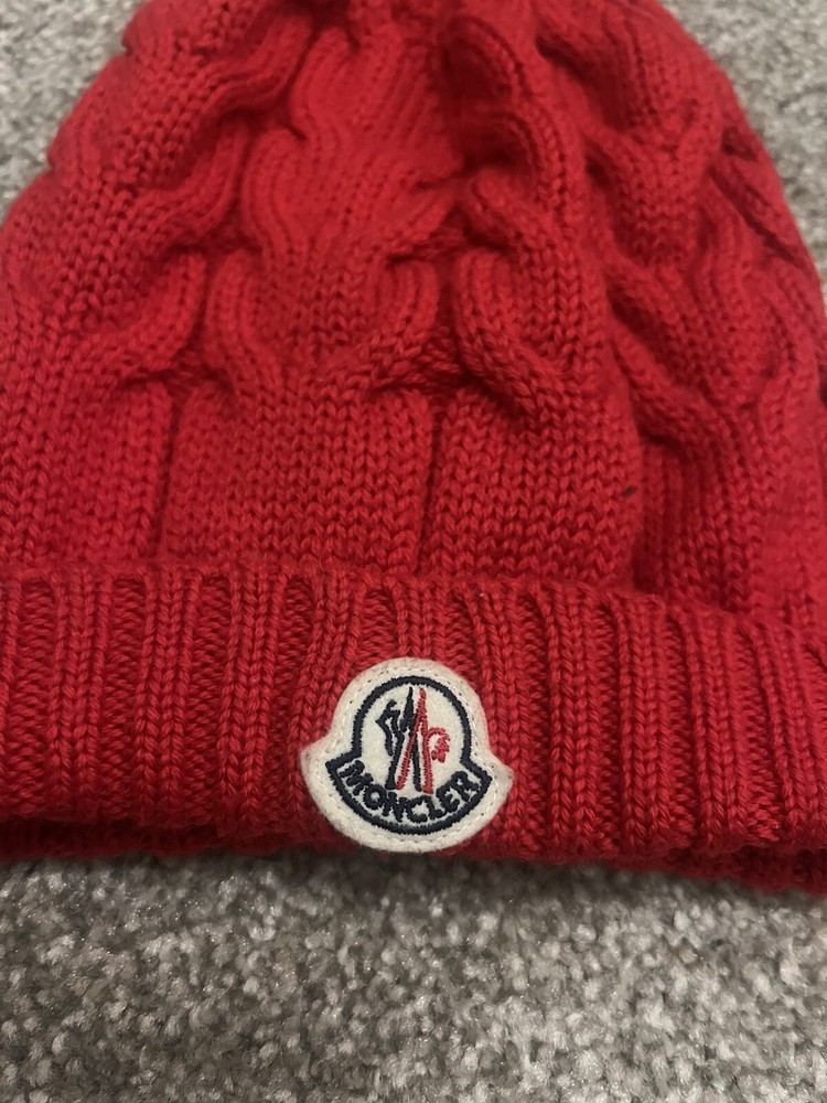 Kids Baby Authentic Moncler Red Beanie Cable Knit Wool Hat. Size Small Great condition