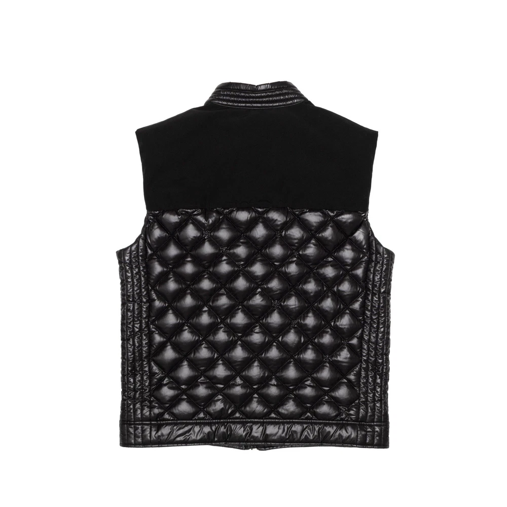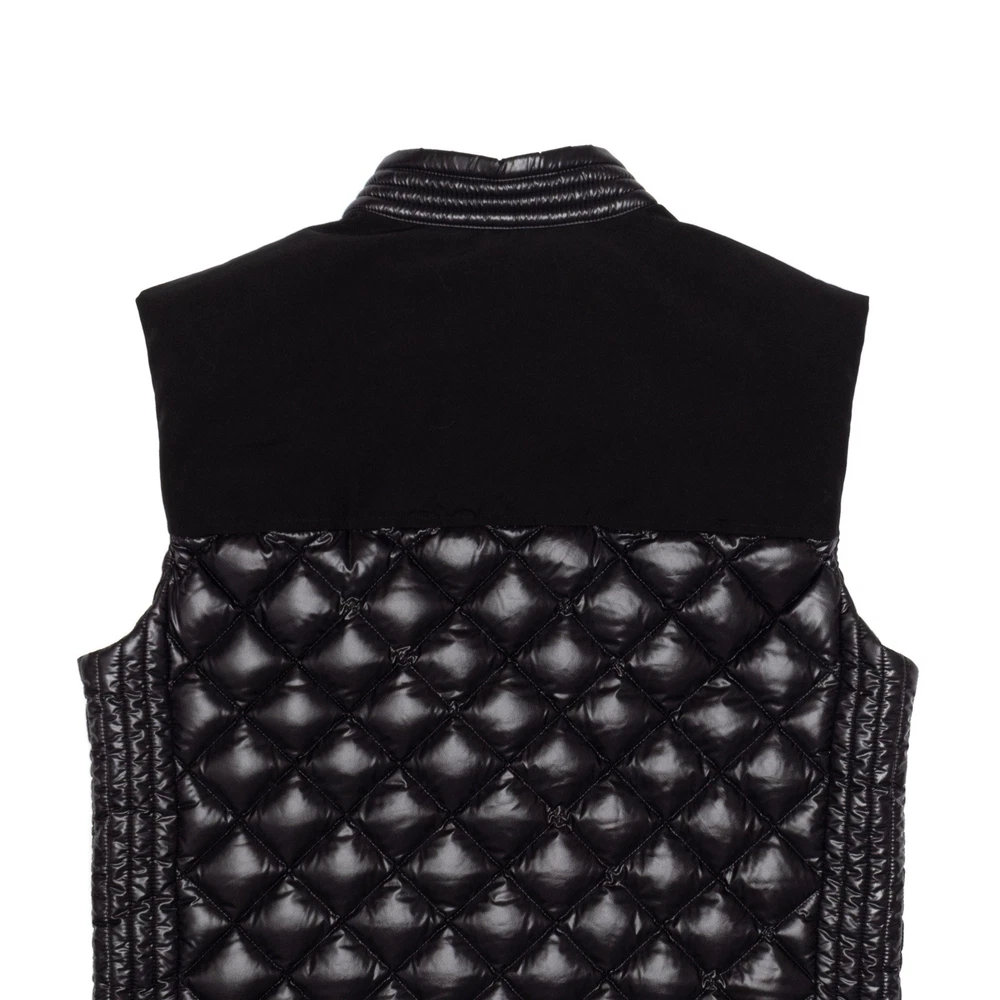 1240$ MONCLER Black Down Quilted Jeunet Gilet Vest 4 ~ M-L - Size: 4 ~ M-L - Measurements: (All Measurements are Made Flat) - Shoulders: 18.5 - Chest : 22 - Length: 28 - Hem: 22 - Very Good Preowned Condition, check photos carefully (8.9/10) - 100% Authentic - RRP 1240$ - Made In Romania - 100% Nylon - Fill: 90% Down, 10% Feathers - A Rare Model That Has Already Been Discontinued - Shiny nylon laqué body with quilted puffer styling - Vislon YKK Zippers - Two-way front-zip Closure - Moncler Patch Logo On Chest - Branded Zippers And Snaps - Looks Spectacular - Great For Casual Looks - Premium Quality - 2 Pockets In Front 1 Inside - Perfectly sits on the figure - Famous Brand - Premium Quality - Attention To Details