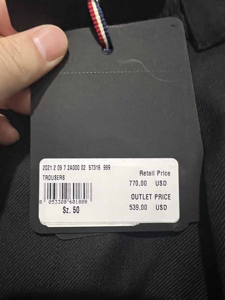 The product is a pair of Moncler men's sweatpants in black, with a regular size type of IT48. These pants are brand new with tags and have an original price of $770. They are designed with a sleek and stylish look, suitable for casual wear or lounging. The inseam length is unspecified.