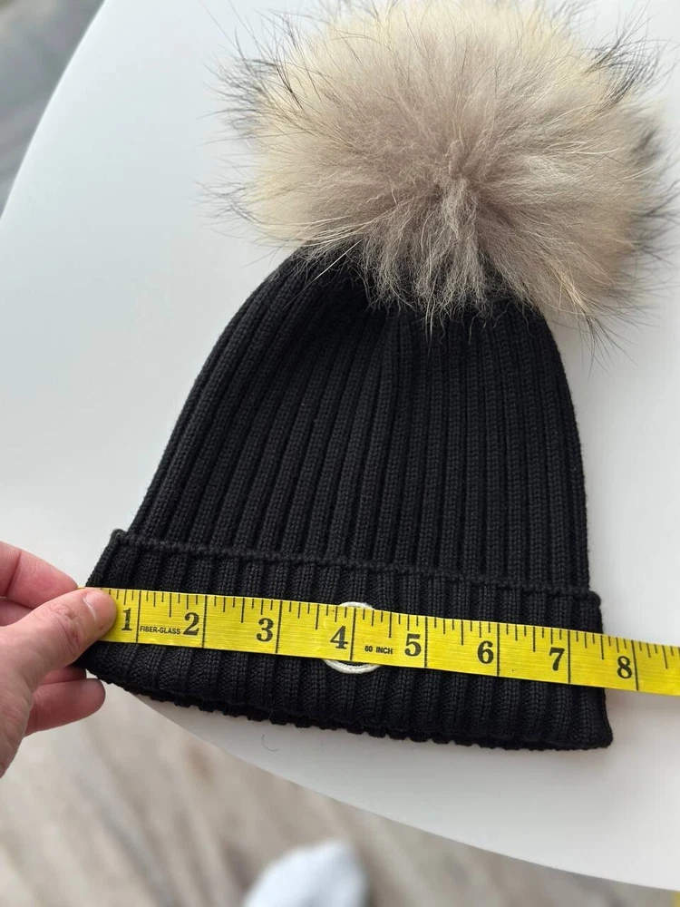 Moncler Womens Black Real Fur Hat Rare Vintage Style