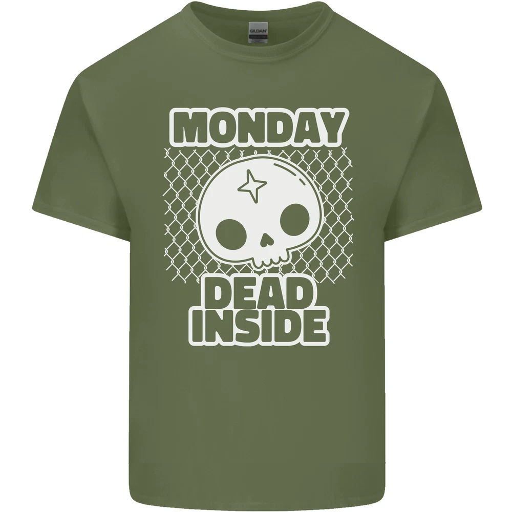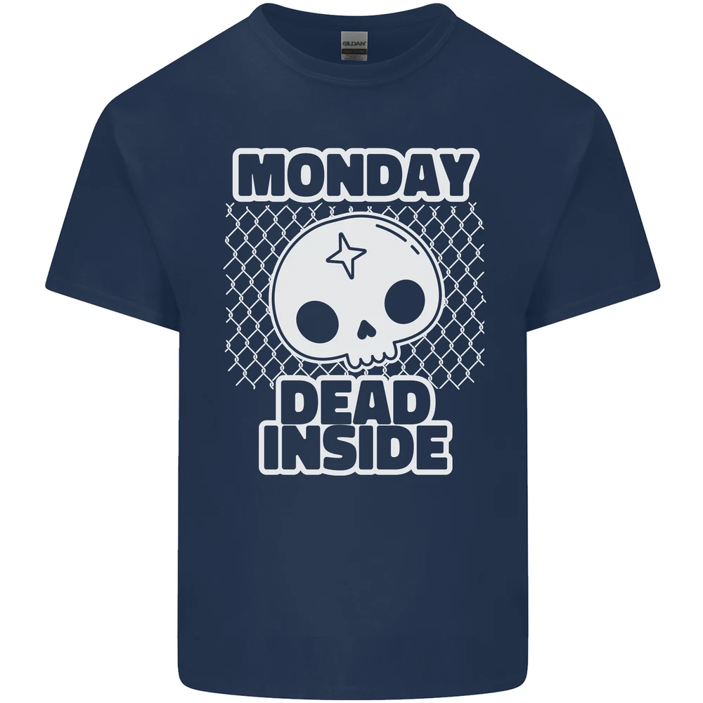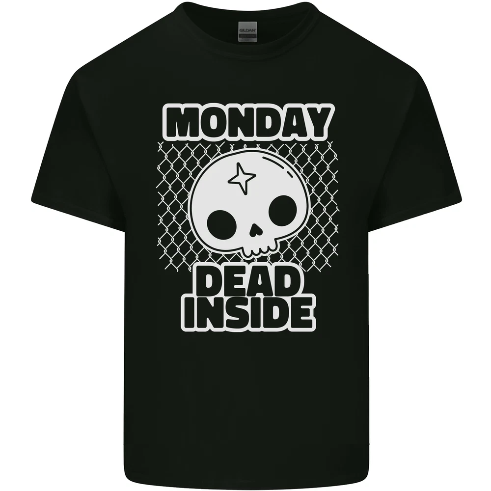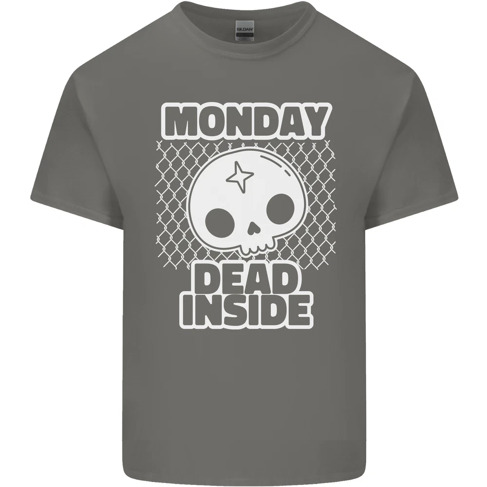 Monday Dead Inside Work Skull Mens Cotton T-Shirt Tee Top