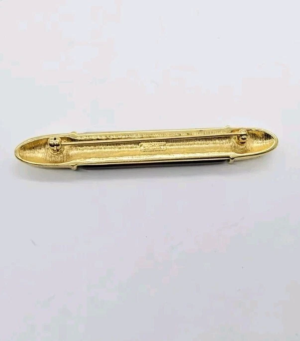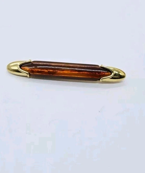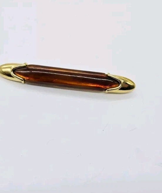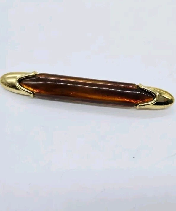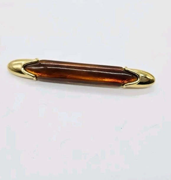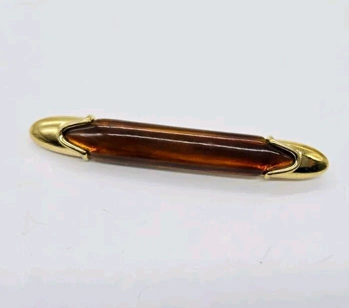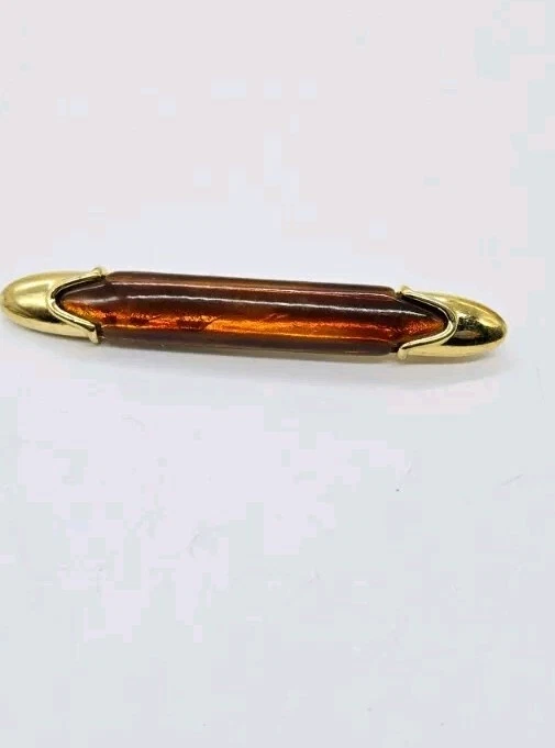 Monet Amber Lucite Bar Brooch Gold Tone Victorian Revival Vintage Signed
